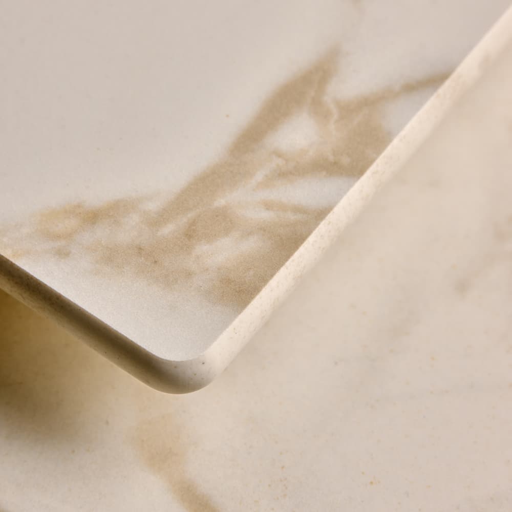 また、イタリアの大手タイルメーカーのイリス・セラミカグループ(Iris Ceramica Group)も、フルボディタイルの表面装飾が厚みの面まで同じ柄が続く独自の技術を開発して、4Dセラミックと呼称しています。4Dは、イリス・セラミカグループの目指す持続可能性に対する価値観と一体となった製品で、それは製造工程にも反映されています。