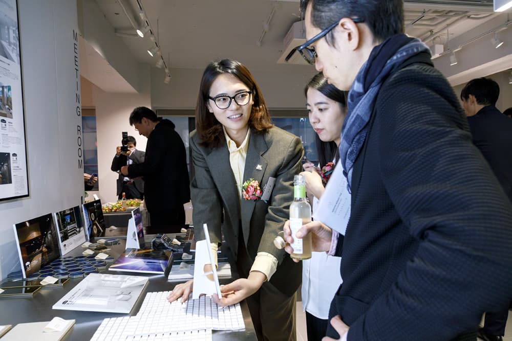 会場では、DA2023全受賞作品15点に採用いただいたタイルの現物を展示しました。皆様タイルに触れたり撮影したり、熱心にご覧くださいました。