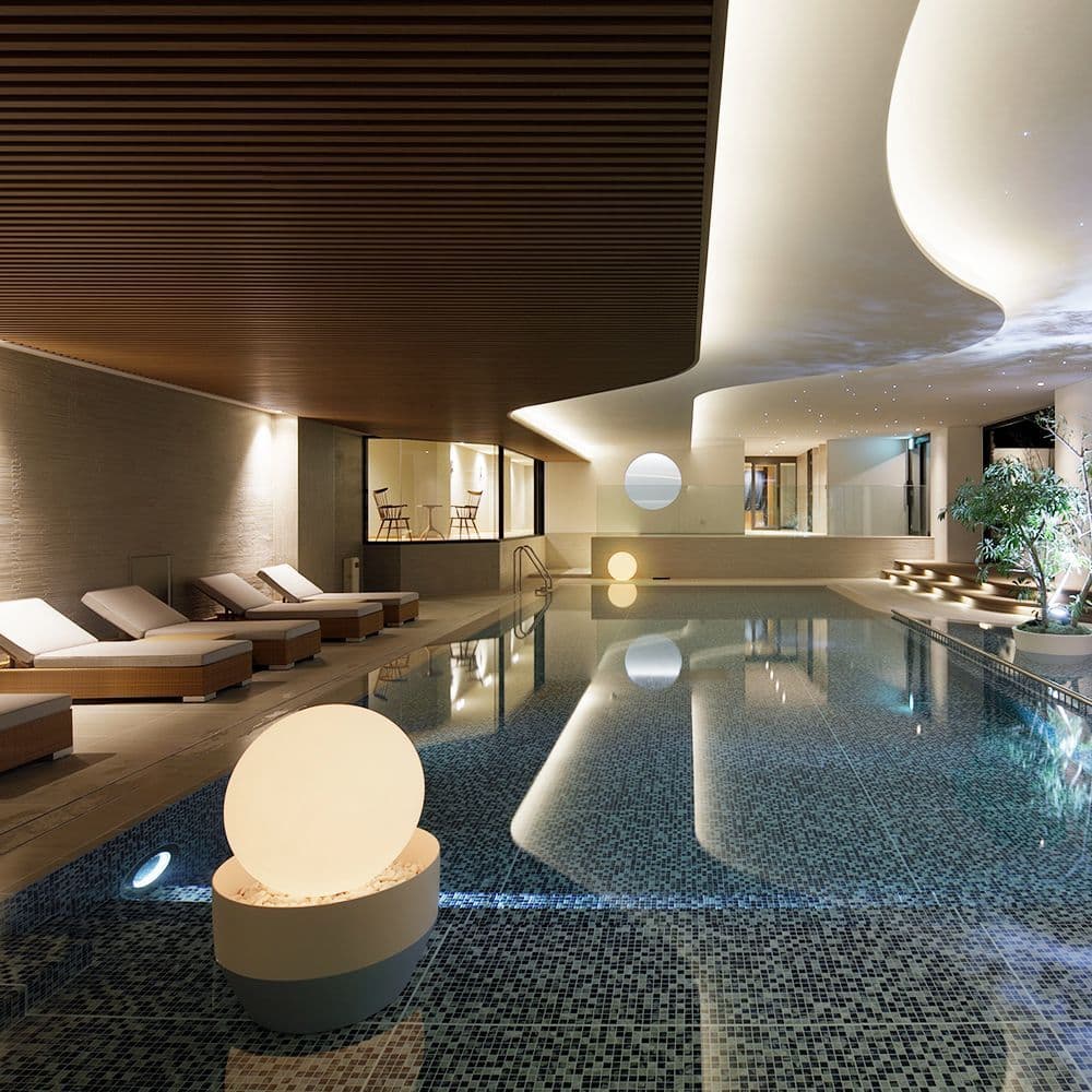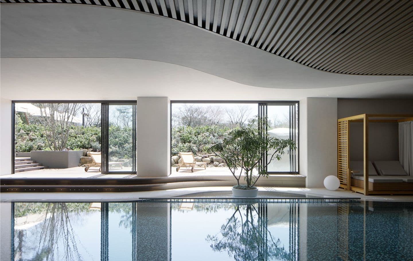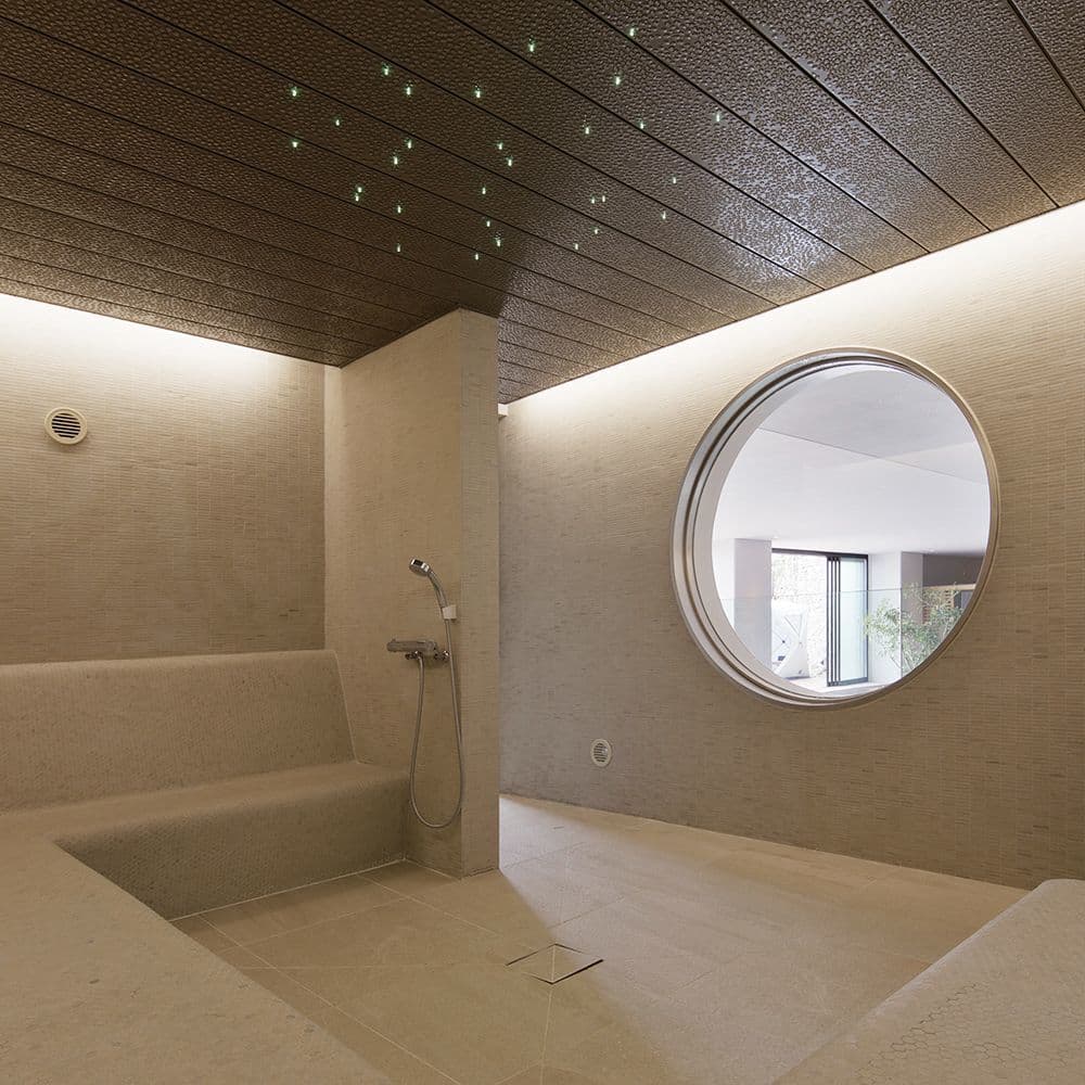 衣服を脱ぎ捨て、触覚が研ぎ澄まされるシチュエーションでは、タイルらしさを存分に味わえる空間が生まれると言えるでしょう。本プロジェクトは、リゾートホテルの温浴施設において、庭へと柔らかくつながる曲線デザインの中に、落ち着いた色合いのタイルが配置されています。穏やかでありつつも、サイズの異なるタイルを使うことで空間にリズム感が生まれるとともに、肌に触れる場所には小さなモザイクタイルを使うことで、触覚に訴えかけるデザインであるところが素晴らしいと感じました。(大西麻貴氏)