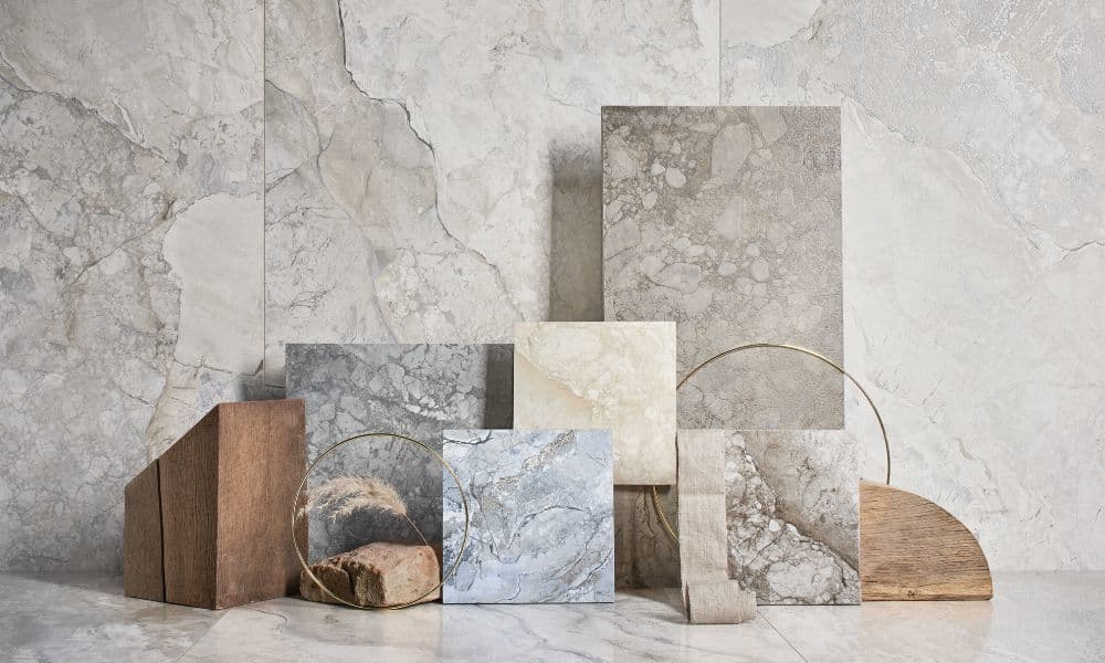 ○圧倒的なサイズ感とリアルな石の質感で、ダイナミックな空間を演出する 大判タイル