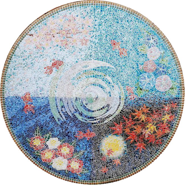 ご応募の中で、いちばんテーマにぴったりの作品ではないでしょうか。春夏秋冬をタイルだけで美しく表現したオブジェです。制作期間半年という、タイルへの情熱を感じる大作で、大人から子供まで誰が見ても日本の四季を感じることができますね。