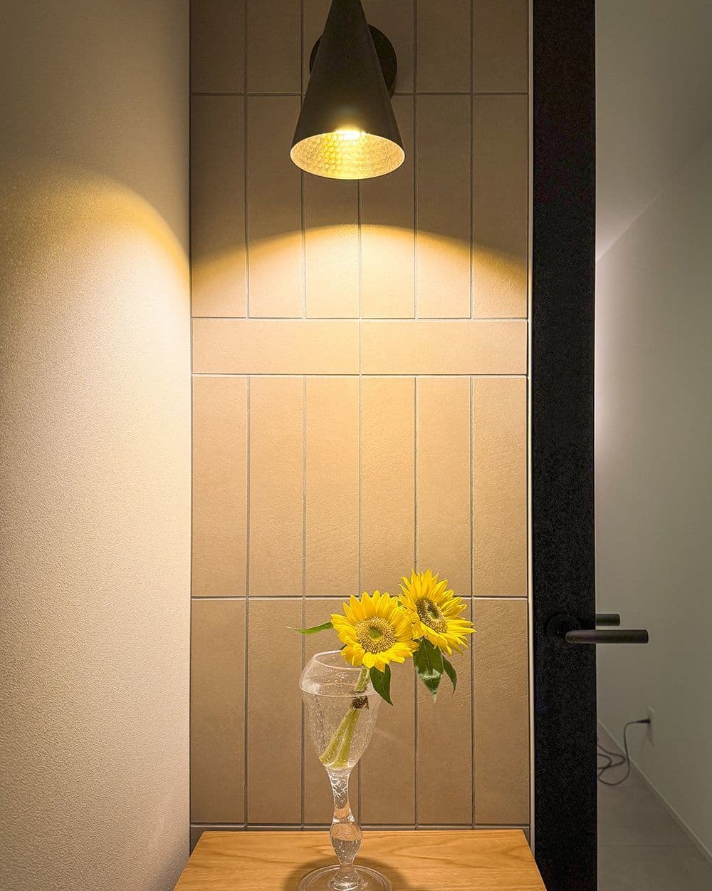 アルヴァ・アアルト建築のレンガタイルに魅了されて選んだ「アベニュー」と、全体のカラーリングにセンスが光る作品です。理想の“たたずまい”を追い求めて完成したこの空間に心惹かれました。