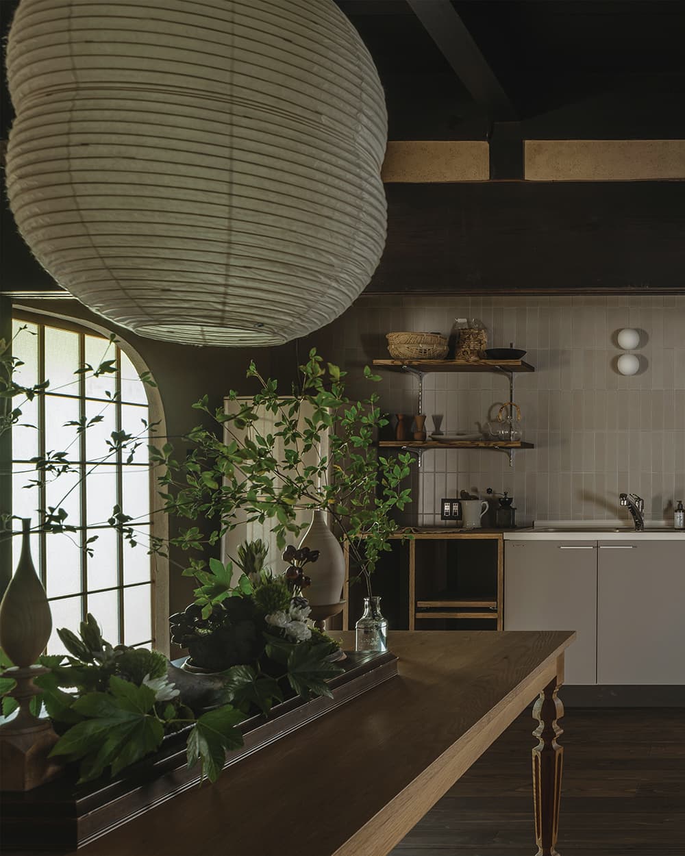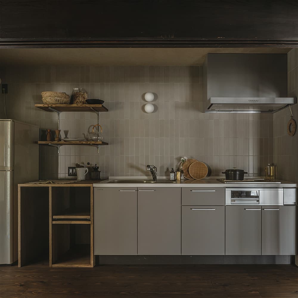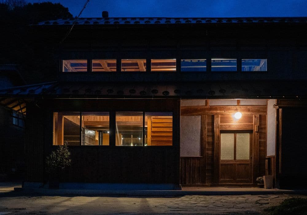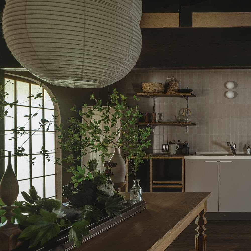 古民家の趣を巧みに活かしたリノベーション。レトロな釉薬が特徴的な「ひだS」は、手仕事の温もりに溢れる暮らしの道具とも相性抜群です。冬の静けさの中で、古民家ならではの深い慈しみが伝わる素敵な作品です。