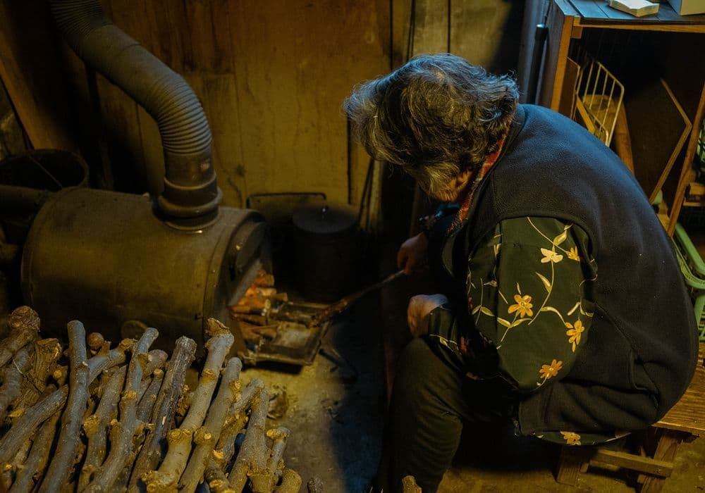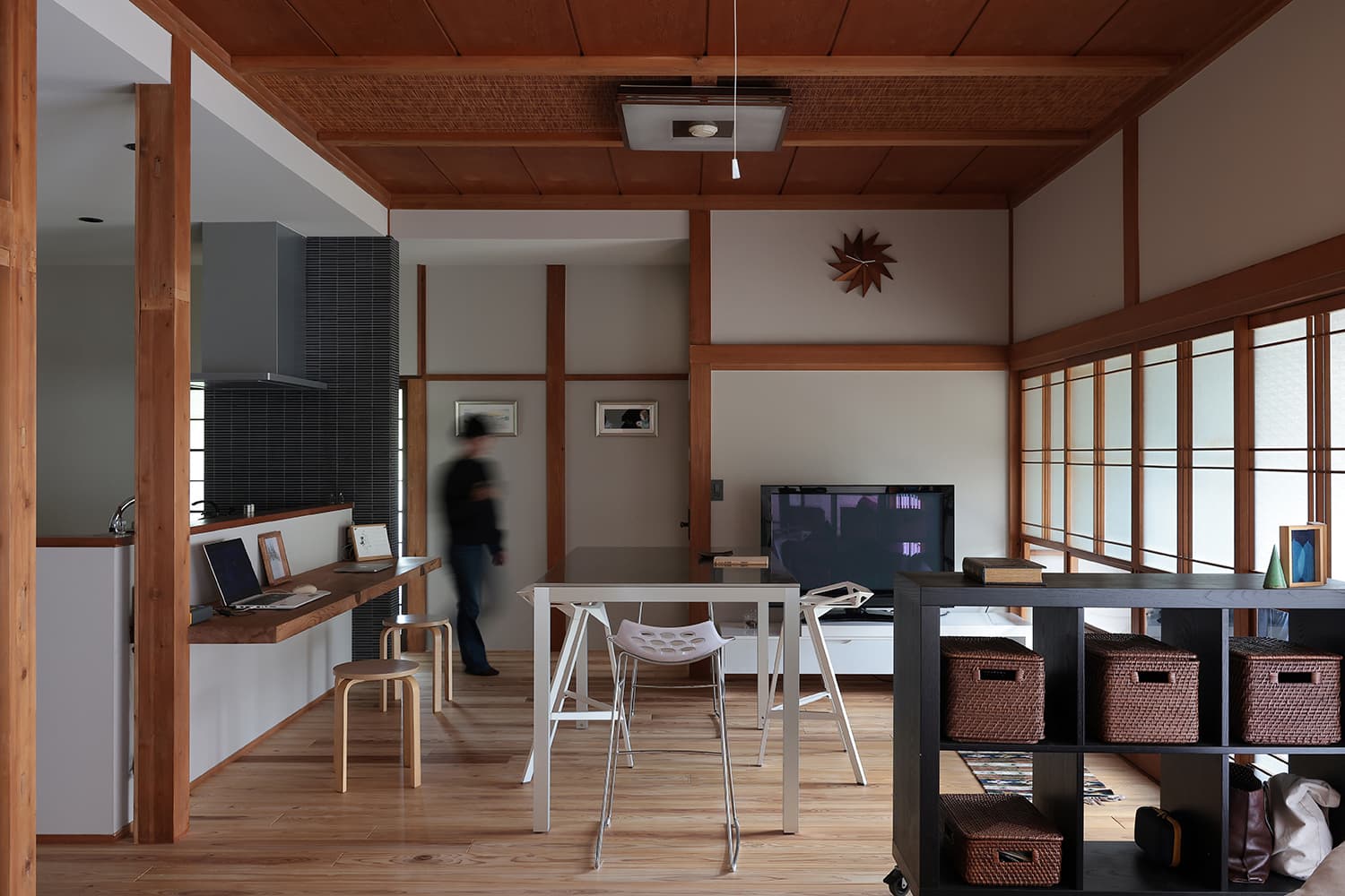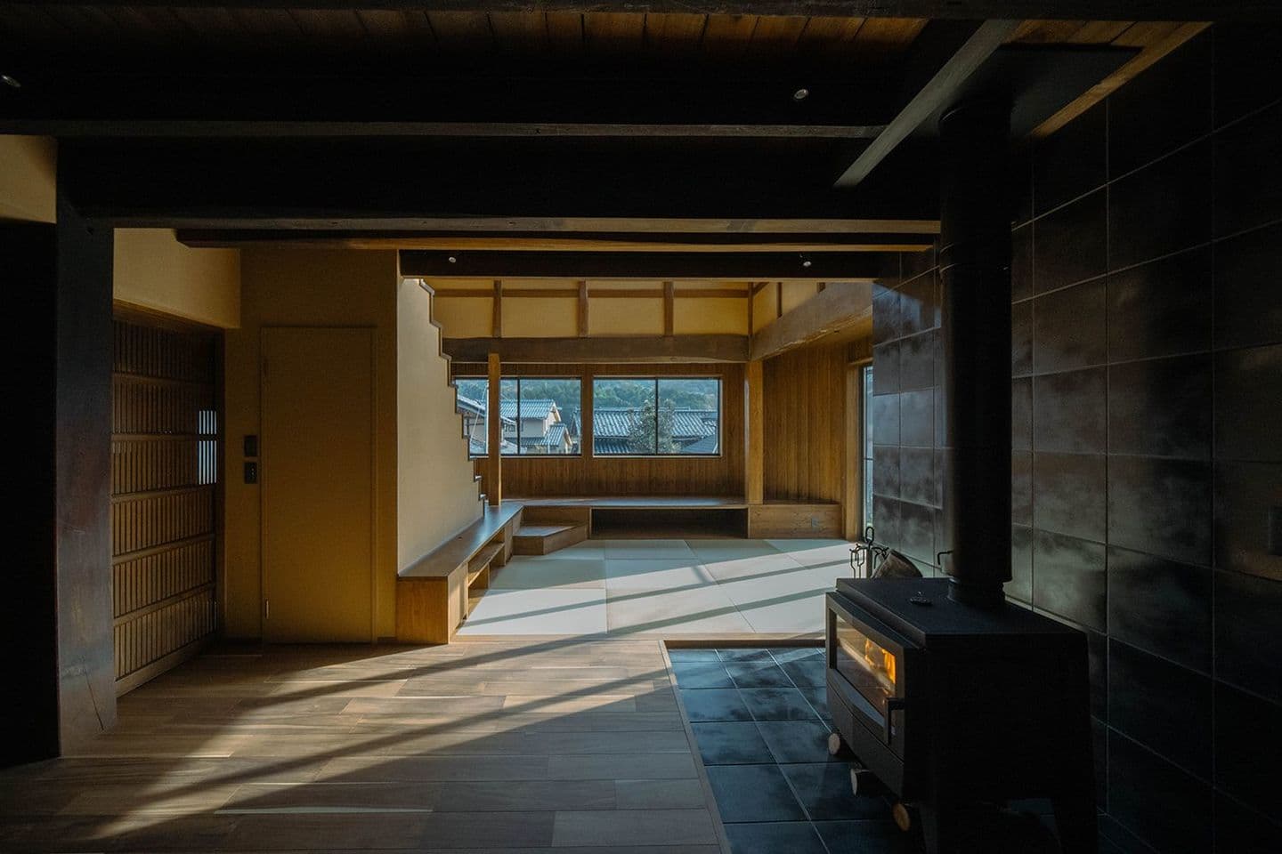 古民家の趣を巧みに活かしたリノベーション。レトロな釉薬が特徴的な「ひだS」は、手仕事の温もりに溢れる暮らしの道具とも相性抜群です。冬の静けさの中で、古民家ならではの深い慈しみが伝わる素敵な作品です。
