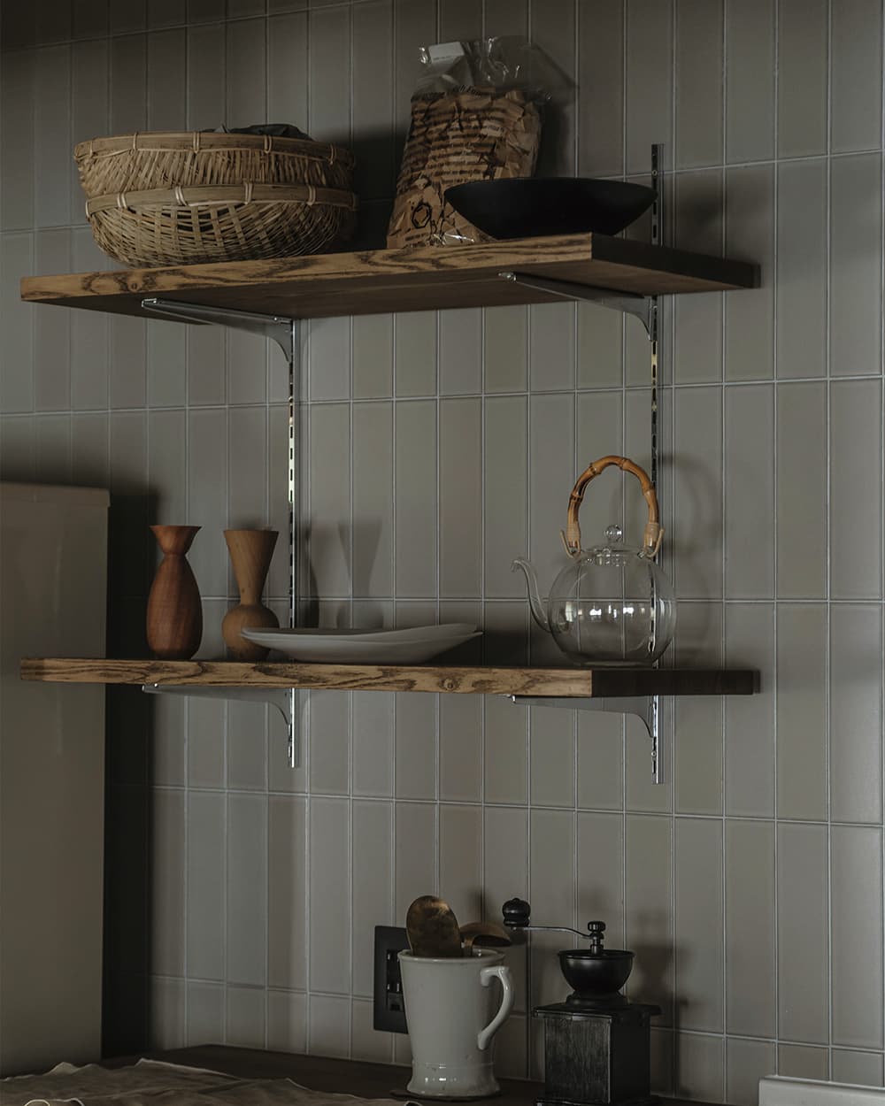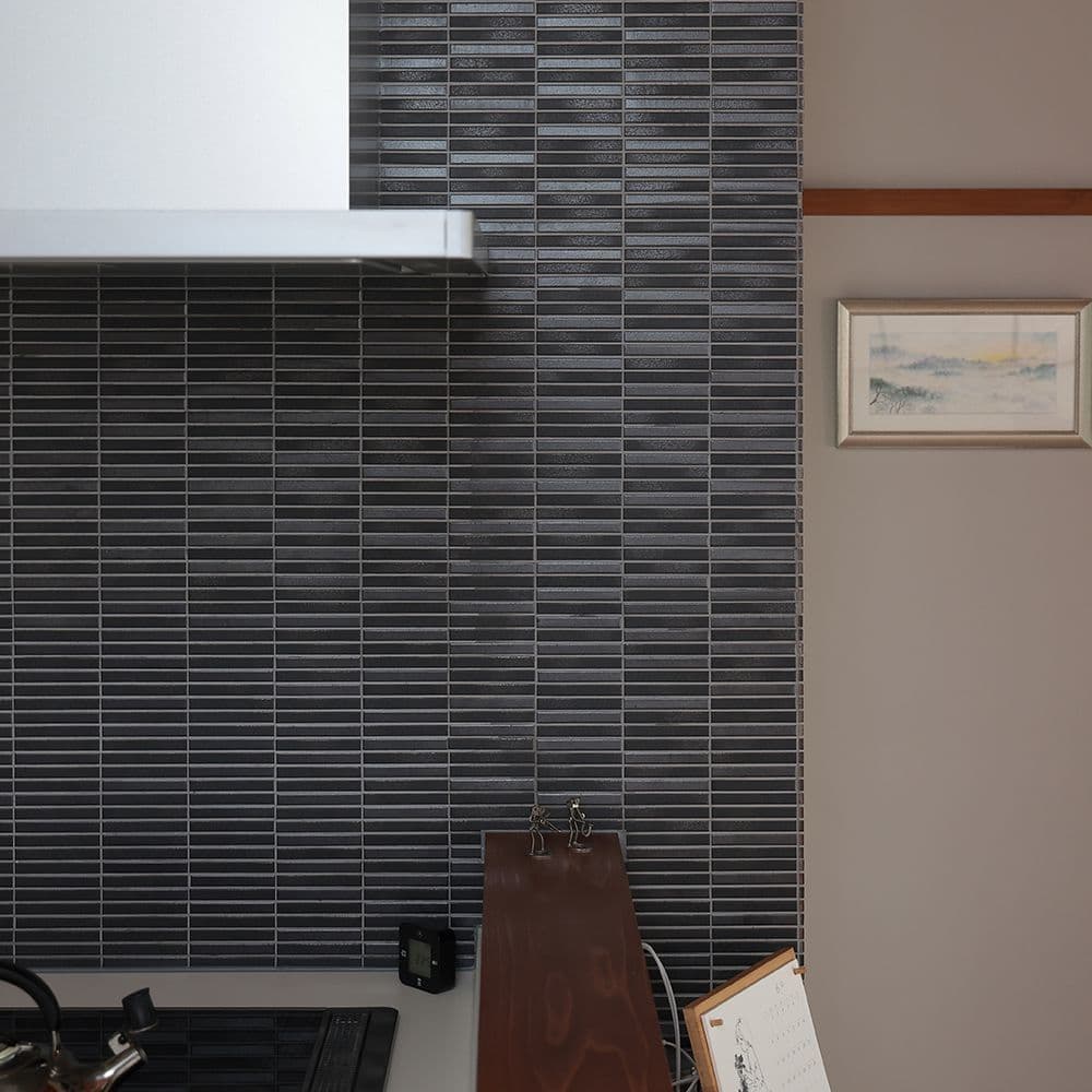 「極細ボーダー」が持つ自然な焼きむらが土の温もりを伝え、農業を志したご夫婦の暮らしを象徴するようです。豊かな情緒を醸す深い“黒”が、日々の営みを静かに見守り、優しく寄り添う“心地よい空間”です。