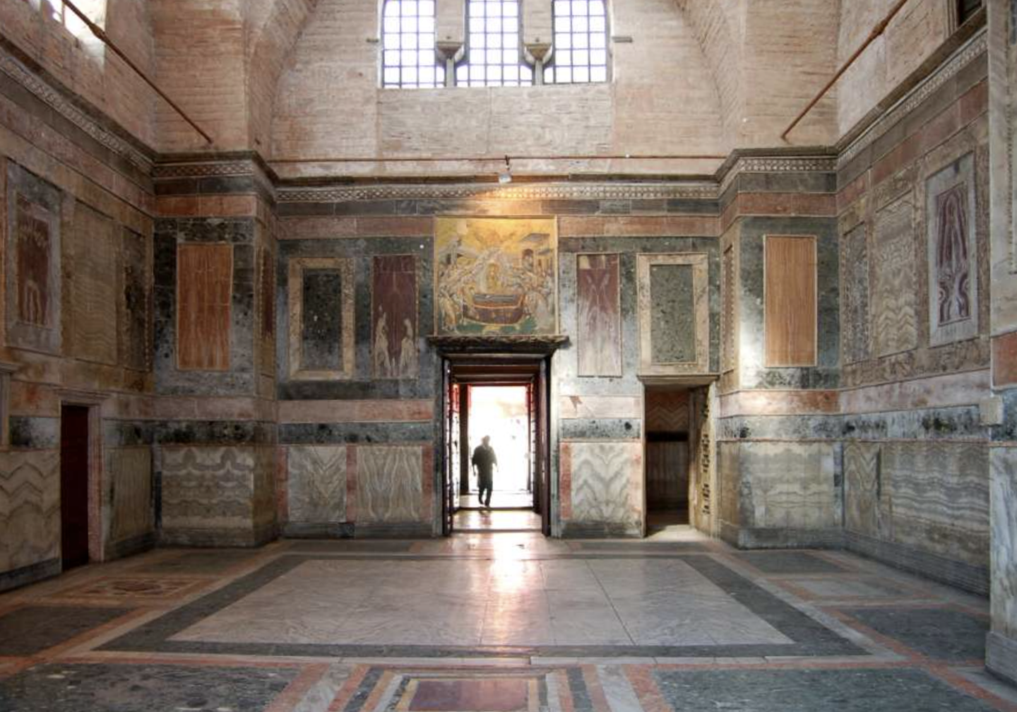 東ローマ帝国の首都であるコンスタンチノープル(現イスタンブール)のアヤソフィアにも、多くの同様な装飾が施されており、中世には教会の装飾として貴重な大理石が争奪の対象となりました。例えば、ビザンティン帝国を征服したヴェネツィア人たちは金と同様に大理石を奪い、幾度もの大規模な修復工事を経て、アヤソフィアから奪取された大理石がヴェネツィアのサン・マルコ大聖堂(Basilica di San Marco)を飾っています。イスタンブールに残った大理石も、ほとんどがトルコ人によって保護され、今もモスクと宮殿を飾っています。また、ドイツのカール大帝はアーヘンのパラタイン礼拝堂に紋章を捧げるためにローマから大理石を奪取しました。そして17世紀には、イタリア人自身も遺跡に残された大理石を使用してバロック様式の教会の壮大な内部を飾ったとされています。