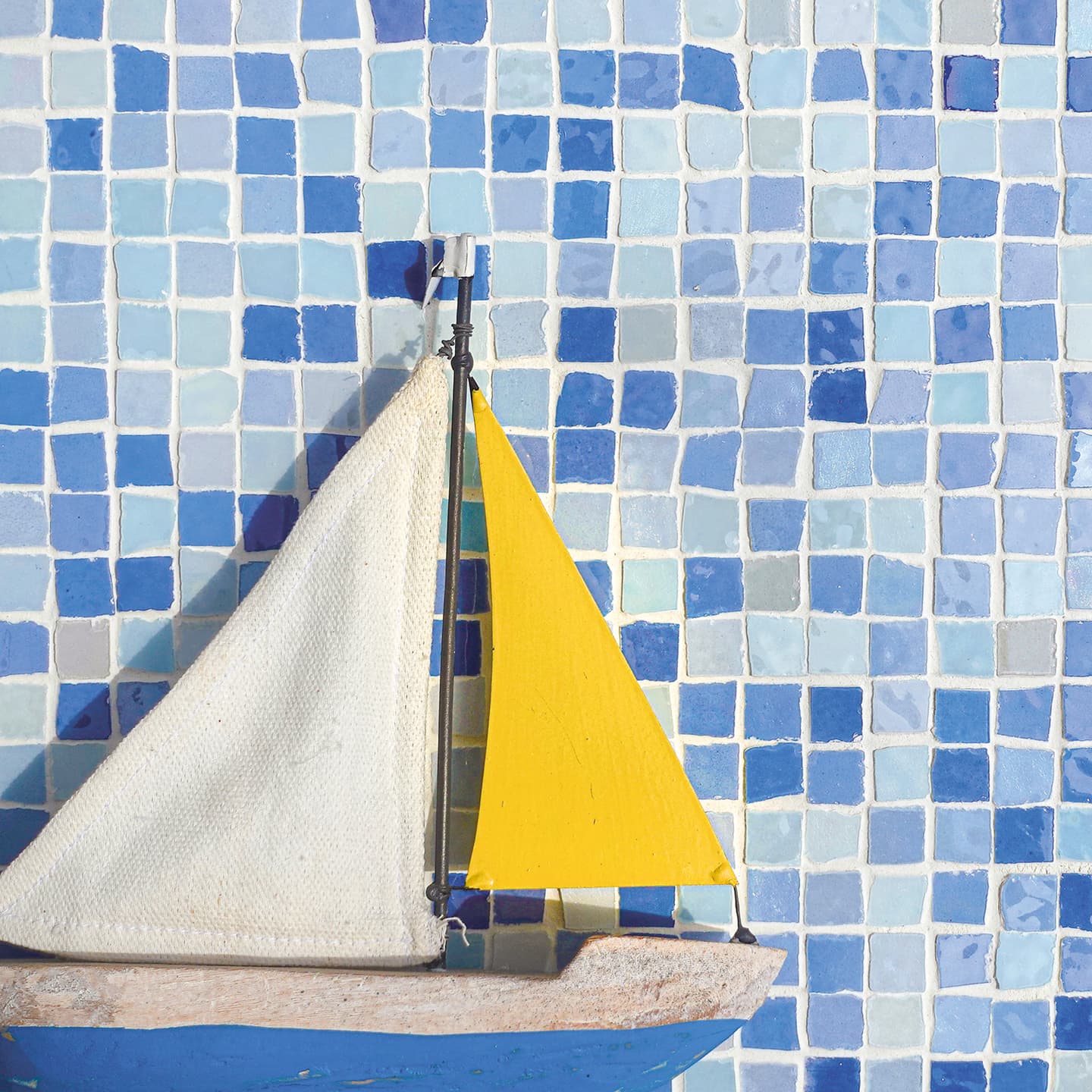 2022年春に販売を開始した「ムラーノデルマーレ」は、サルデーニャ島(イタリア)、フィグツリー湾(キプロス)、ポート・ヴィクトリア(オーストラリア)、リーパリ島(イタリア)、バイカル湖(ロシア)、ミコノス島(ギリシャ)の、世界中の海や湖のブルーをガラスと融合させた、幻想的なモザイクタイルです。