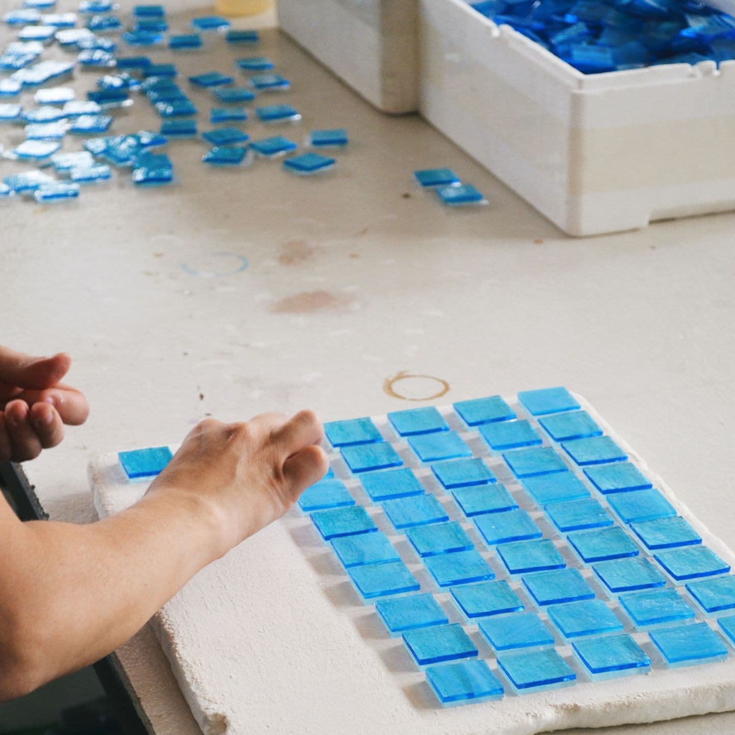 ヴェネツィアングラスを使った色鮮やかなガラス製タイル