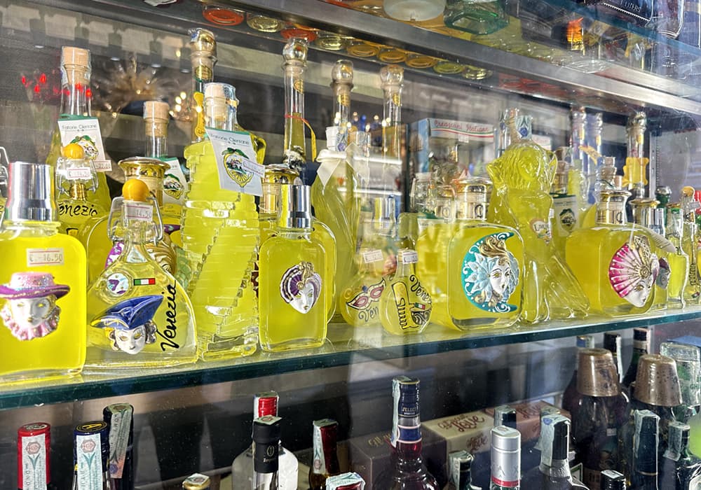 仮面の装飾が施されたイタリア特産品、リモンチェッロ