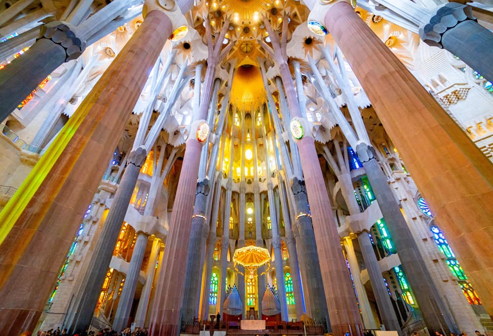 神秘の森とも呼ばれる、サグラダ・ファミリア聖堂の内部中央
