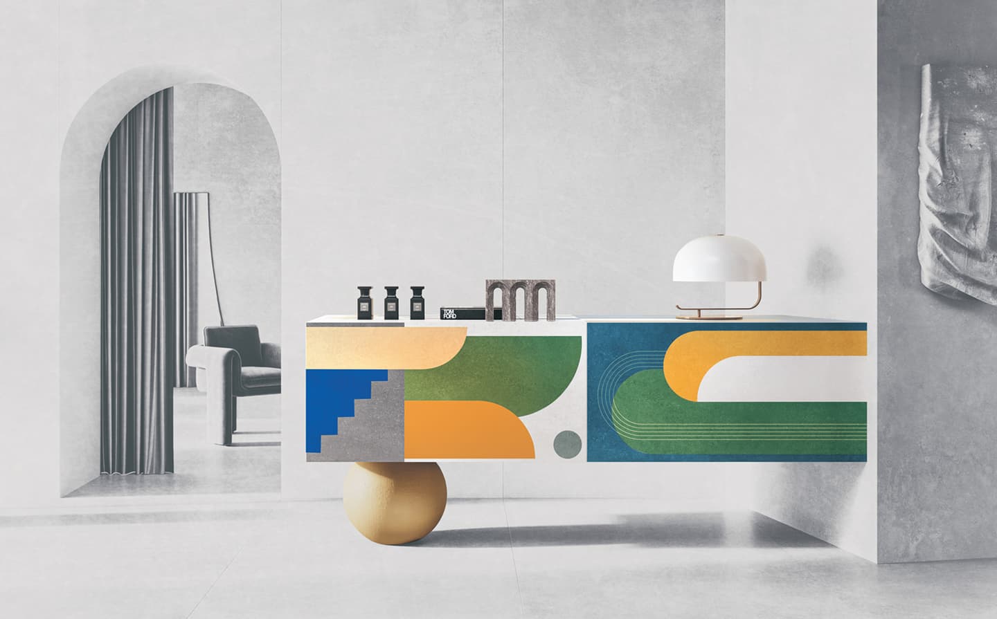 自然界の幾何学的な美しさを追求したデザインと、異なる時代の美的要素を融合させたアートワーク。