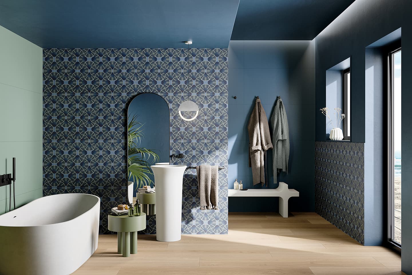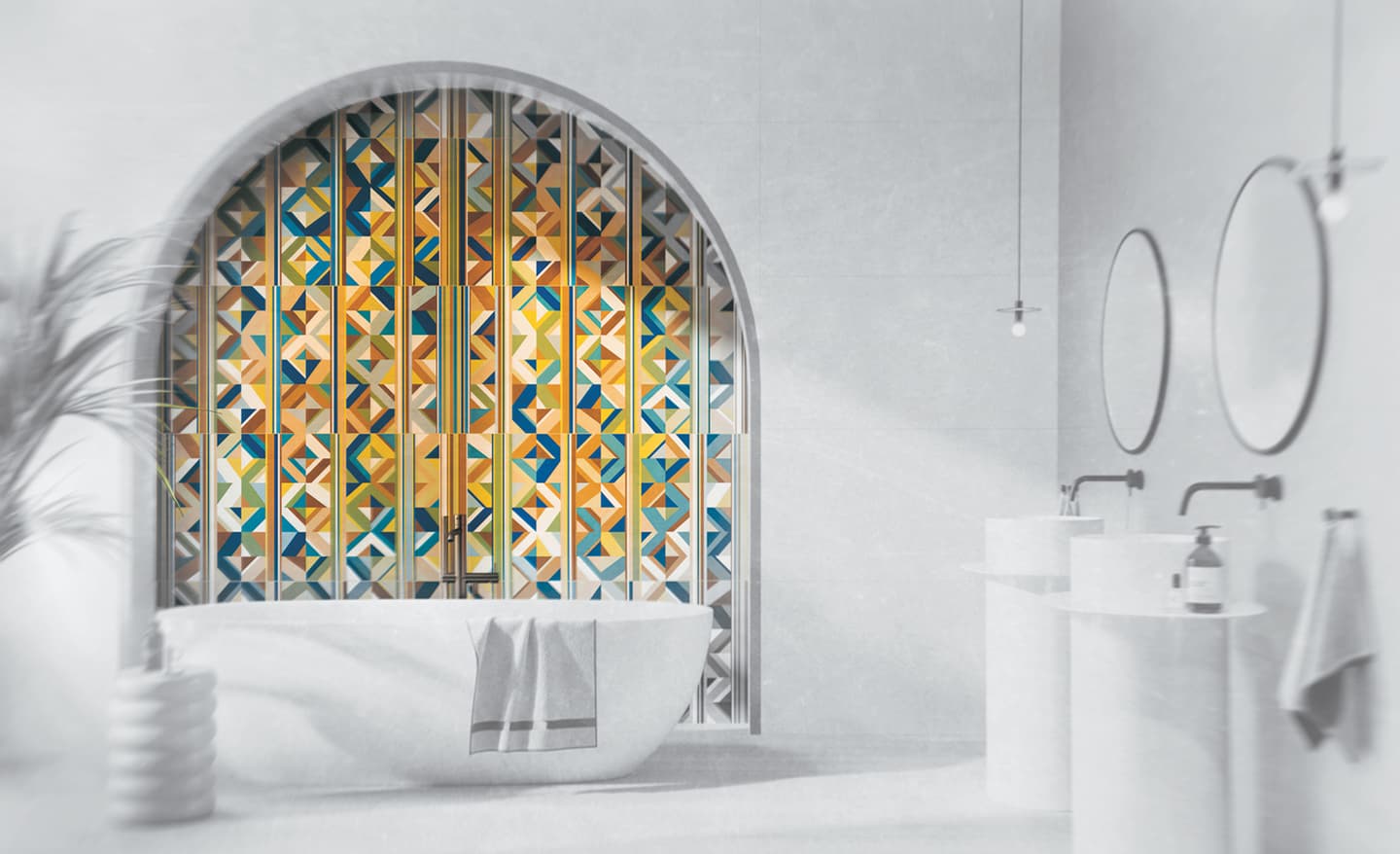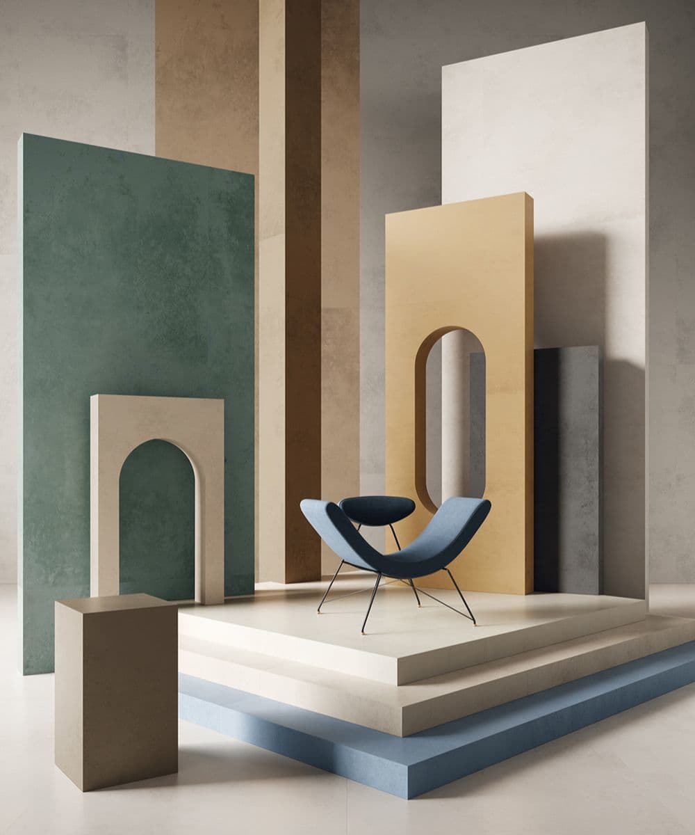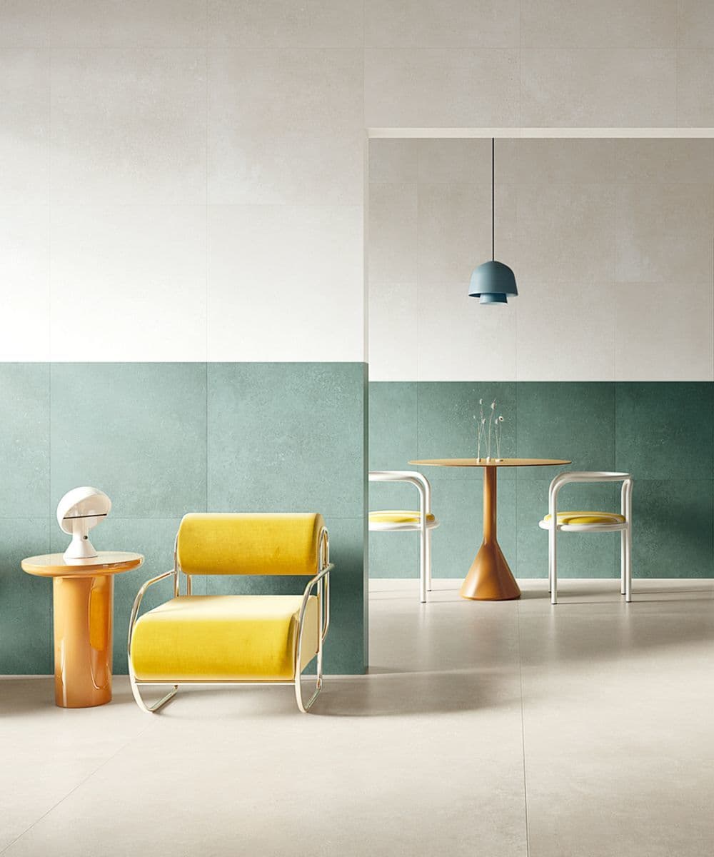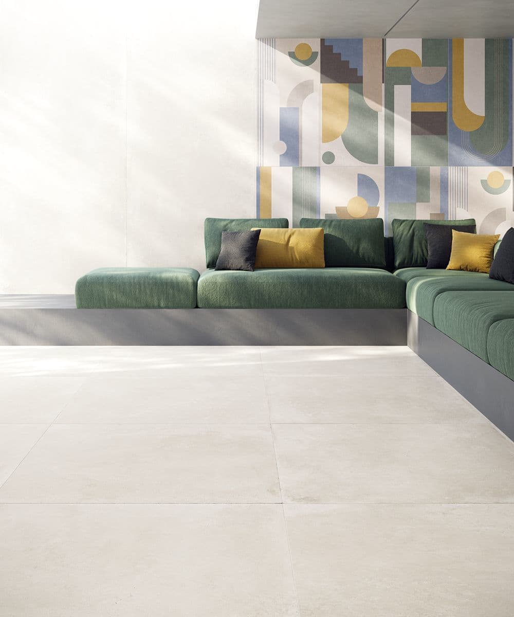 タイルは昔から建築に欠かせない要素であるため、歴史的な建築物がタイルメーカーのインスピレーションとなっているのは当然のことですが、今年のトレンドとして、それが顕著に表れています。コンクリートアートのカラーパレットと幾何学模様は、メキシコの前衛的な建築家リカルド・レゴレッタやルイス・バラガンの作品にインスピレーションを受けており、明るくパワフルで、漆喰のような陰影のある表情を際立たせています。色彩の遊び心を取り入れることで、控えめでありながらも深みのある魅力的な空間をデザインすることができ、建築に新たな視覚的豊かさを加えることができます。