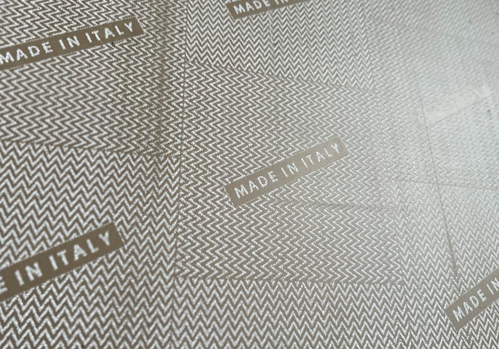 コンクリートアートのタイル裏面に刻まれた「Made in Italy」