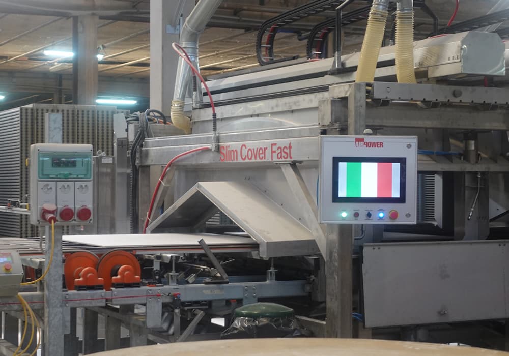 工場内の機械液晶にもイタリアの国旗が映し出されていた