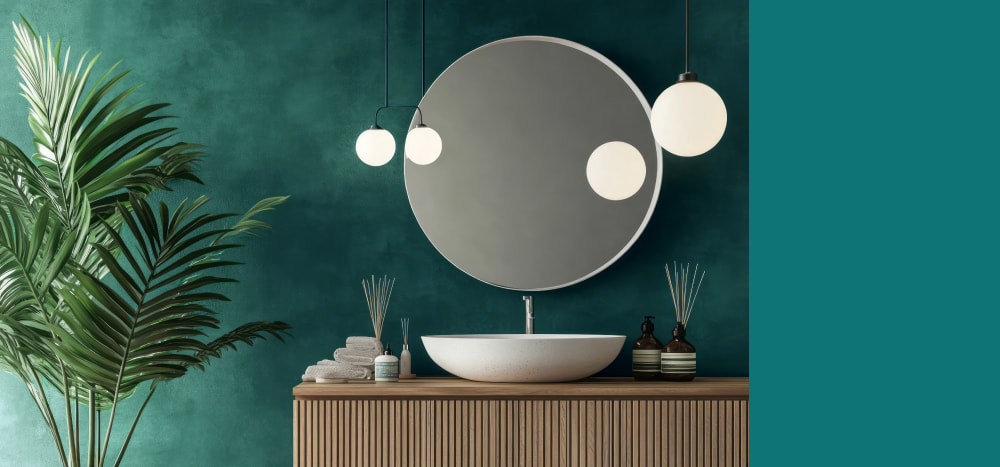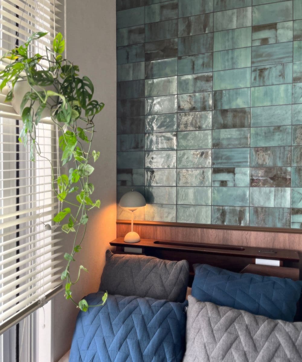 近年トレンドのモデレートカラー(=濁色 / 中間色)は、鮮やかな色にグレーを混ぜた色のことで、穏やかで落ち着いた上品な印象を与えます。ホライゾングリーンはブルーとグリーンが調和した、空間に安らぎと爽やかな印象をもたらす色で、この色もまた、空間のアクセントとしてタイルを使って取り入れるのが最適です。例えば、壁にホライゾングリーンのタイルを使用し、ステンレス製の家電や家具と組み合わせれば、洗練された都会的な雰囲気に。一方、真鍮の金具と合わせると、温かみのあるクラシカルな雰囲気に仕上がります。さらに、さまざまな素材と相性が良く、オークやウォールナットなどの木材や、ホワイトやライトグレーの大理石、スレートなどの天然石と合わせることで、上質で高級感のある印象を演出できます。ステンレスや真鍮といったメタリック要素と組み合わせると、モダンでスタイリッシュな空間が完成します。