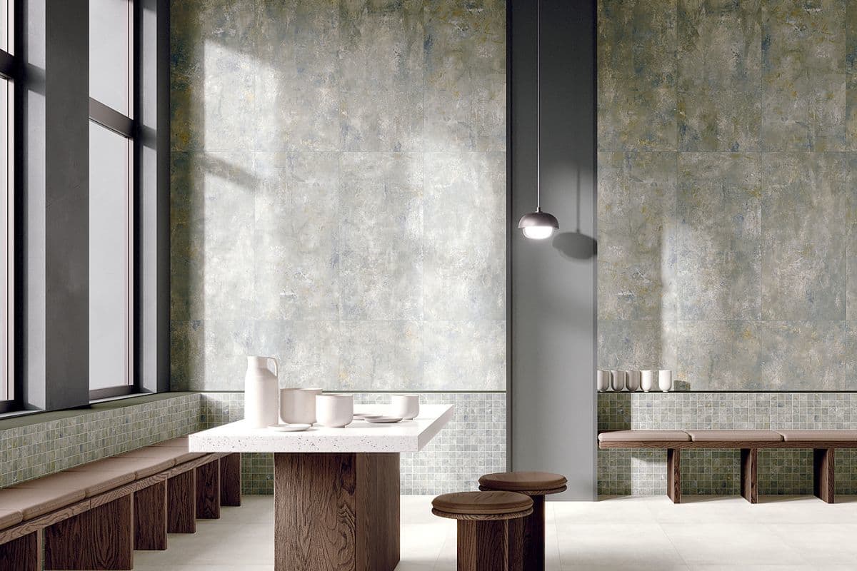 毎年12月頃に様々な機関が発表する翌年のトレンドカラー。トレンドカラーは、デザイン系のイベントやカラートレンド予測機関(例:PANTONE®︎社)から発信され、その時代の価値観を象徴する色として世界中のクリエイターやデザイナーに大きな影響を与えています。今回は、色彩の標準化に貢献するアメリカの企業として世界的に知られるPANTONE®︎社がリッチで温かみのあるブラウン「Mocha Mousse(モカムース)」を、そして日本流行色協会(JAFCA)が自然を象徴する深い青緑「Horizon Green(ホライゾングリーン)」を、それぞれ2025年の代表色として公表しました。これら2色は一見異なるようでありながら、共に自然とのつながり、心の安らぎ、そして日常の温もりを反映した色合いです。今回は、この2つのトレンドカラーに関連するタイルをご紹介します。