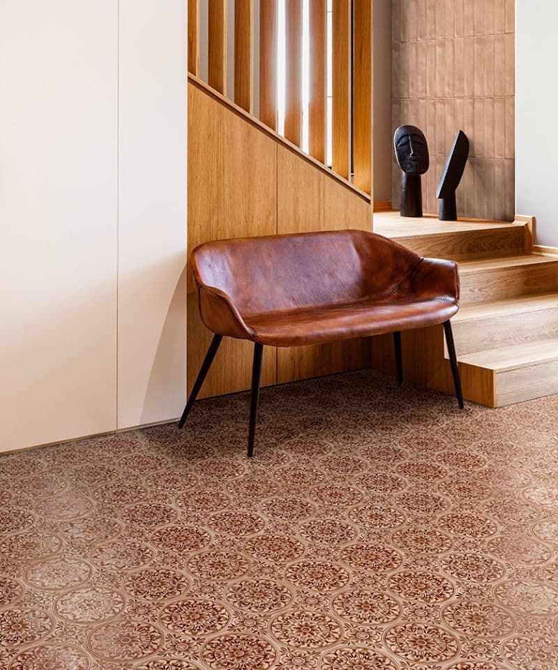 2024年の「ピーチファズ(Peach Fuzz)」がやわらかな優しさを表現していたのに対し、モカムースは少し地に足がついたような落ち着きと深みを感じさせます。自然と調和し、忙しい日常に穏やかな瞬間をもたらすこのカラーは、今の時代にぴったりの癒しカラーと言えるでしょう。モカムースはタイルで取り入れるにも最適なカラーです。タイルの施工場所としておすすめのキッチンや洗面室、リビングの一部にモカムース色のタイルを使い、木材やラタン、リネンといった自然素材と組み合わせればシンプルで温かみのある空間になります。また、質感のある素材のベルベットやスエード、レザーと相性がよく、大理石、真鍮などと組み合わせれば高級感のある空間に仕上がります。さらに、トライバル柄のラグやクッションを添えれば、ボヘミアンスタイルも楽しめます。