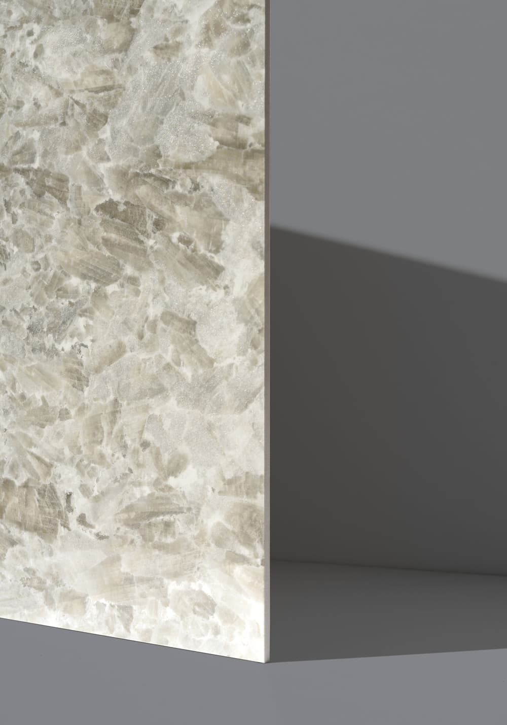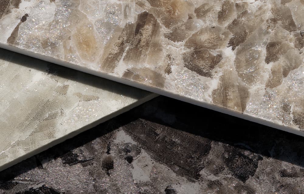 この幻想的で革新的なタイルは、住宅からホテル、商業空間まで幅広いシーンでその力を発揮します。例えばホテルや店舗では、間接照明との組み合わせによってラグジュアリーな雰囲気を演出し、住宅空間では、リビングや玄関ホールのアクセントに使用することで日常空間に上質な特別感をもたらします。