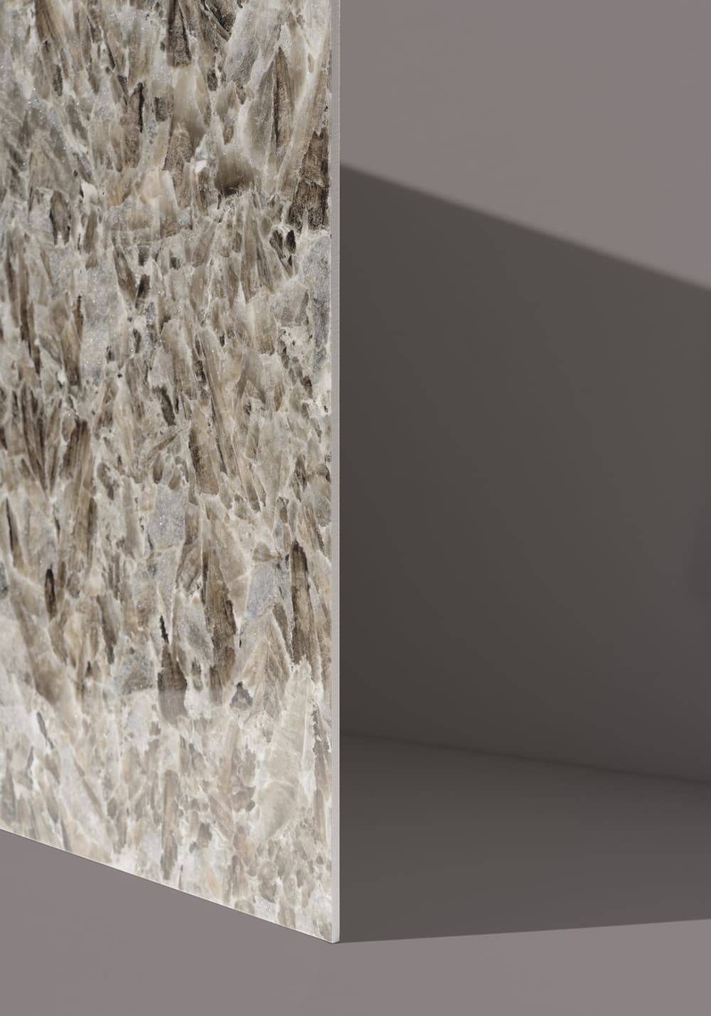 このコレクションの発想の出発点となったのは、紀元前1世紀頃の古代ローマで“光を通す石”として用いられていた「Lapis specularis(ラピス・スぺクラリス)」と呼ばれる透明な石膏の一種です。ガラス製の窓がまだ普及していなかった当時、人々はこの透明な石膏を薄くスライスして住宅の窓として採光に用いていました。ラピス・スぺクラリスは自然光をやさしく透過し、室内にやわらかな光をもたらしました。ときに淡く金色がかったその輝きは、まるで時間がゆるやかに流れているような静けさを空間にもたらしました。ラピス・スペクラリスは、ただの“窓”ではなく、“光を調えるマテリアル”としての役割を担っていました。そんな歴史的素材をテクノロジーによって現代のマテリアルとして蘇らせたのが、セレナイトです。過去の記憶を未来へ紡ぐ素材として、現代の空間創造に新たな可能性をもたらすでしょう。