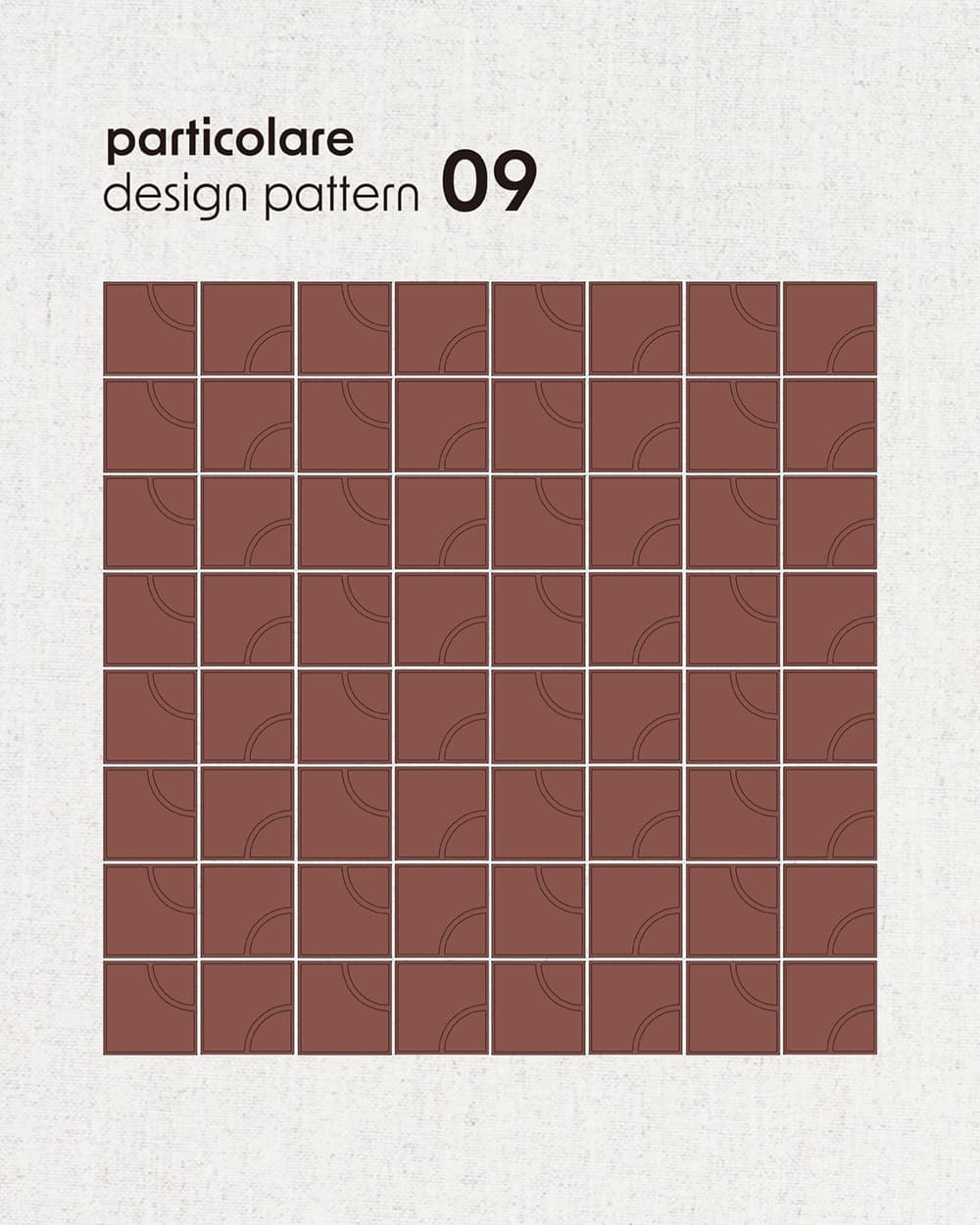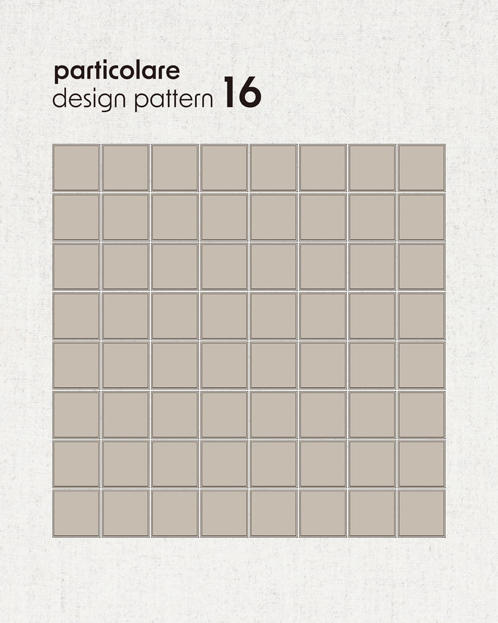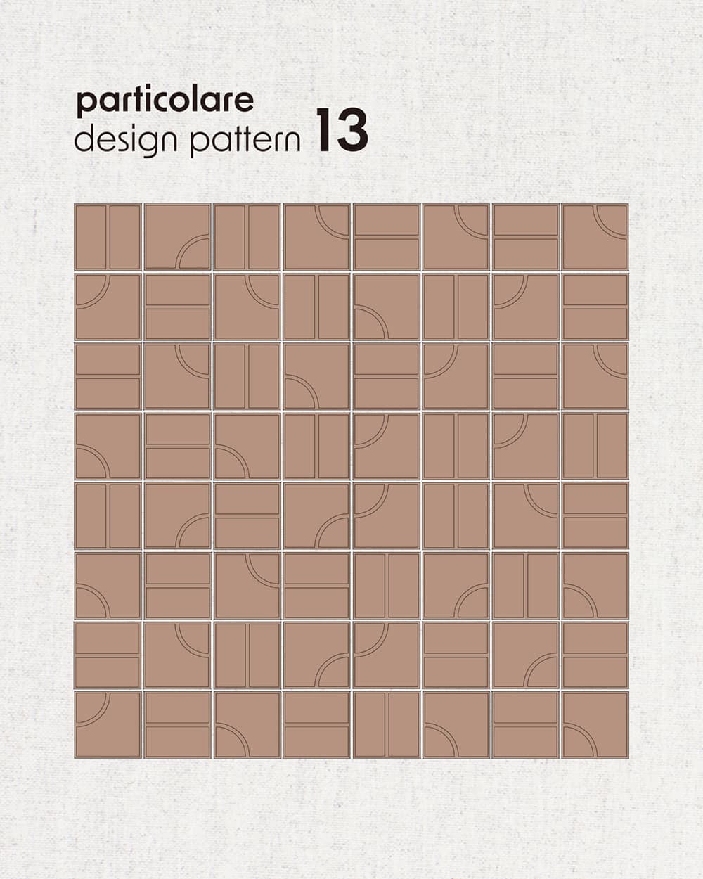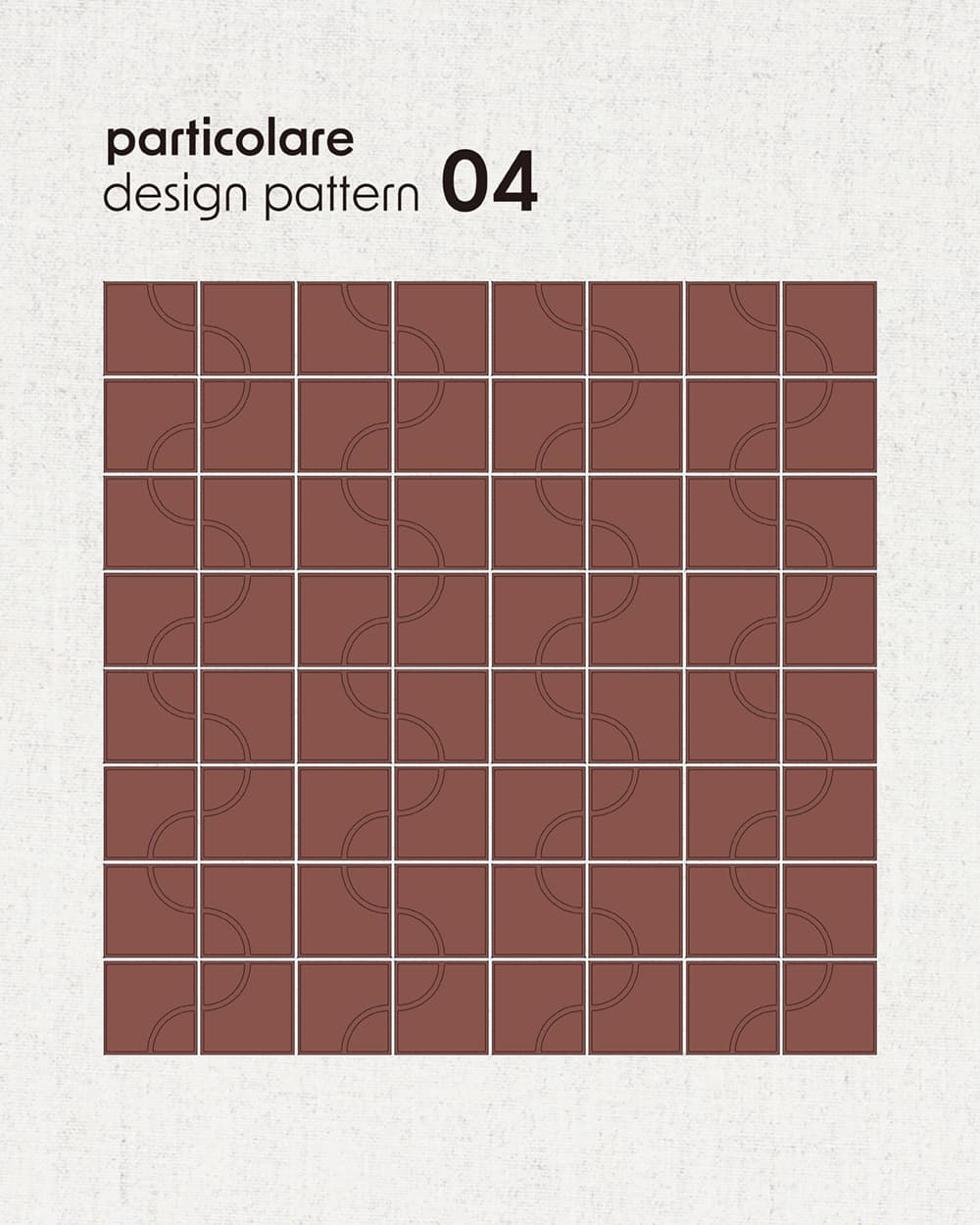 普遍的な美を求めた建築家パッラーディオが用いた構図操作──反復、対称、回転。その思想を壁面で端的に表現するのが「パルティコラーレ」です。124.5mm角のタイルに、Plain・Line・Curveの3種の立体フォルムを組み合わせ、スモーキーな色彩で展開。直線と曲線から生まれる陰影のリズムは、壁面をディテールからデザインし、クラシックなスタイルにもコンテンポラリーなスタイルにも調和します。新商品「パルティコラーレ/PARTICOLARE(=ディテール / イタリア語)」は、その名の通り、細部が全体の美を形づくることを具現化したタイルです。