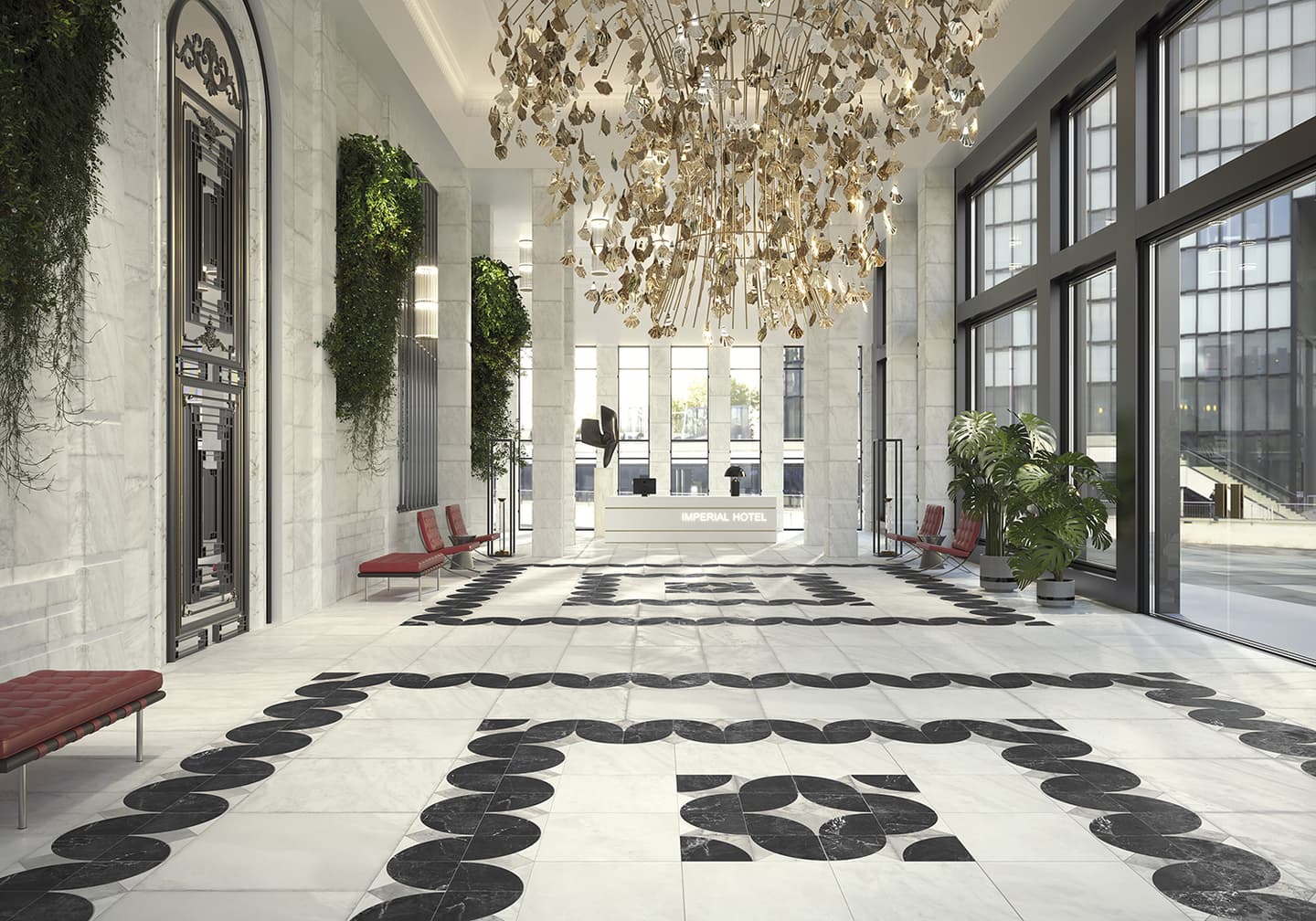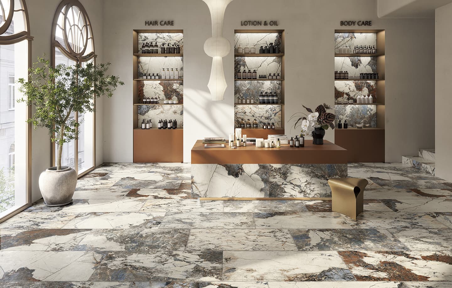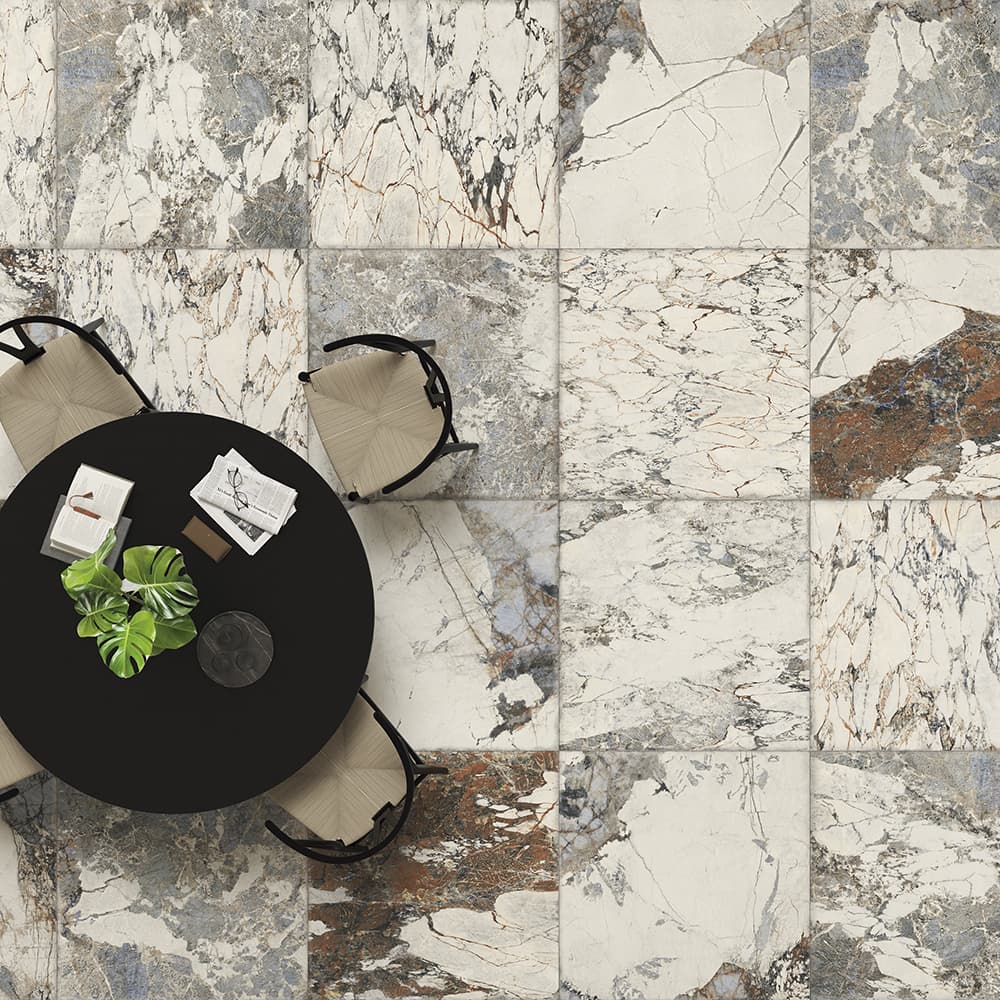 ローマ文明の記憶を留める希少な石の表情と、様式化された花々、そして継ぎ目のないシームレスな幾何学図案。イタリアの伝統的な建築意匠において非常に重要な、幾何学的な美しさを現代の技術で再現することで、空間全体を劇的な物語を宿す舞台へと変貌させます。このコレクションの設計思想は、プロ意識の高い設計者に刺激的なインスピレーションを与えます。それは単なる自己主張としての創造性ではなく、時を超えて空間に物語と記憶を、「カタチ」として深く刻み込むプロセスであると確信しています。