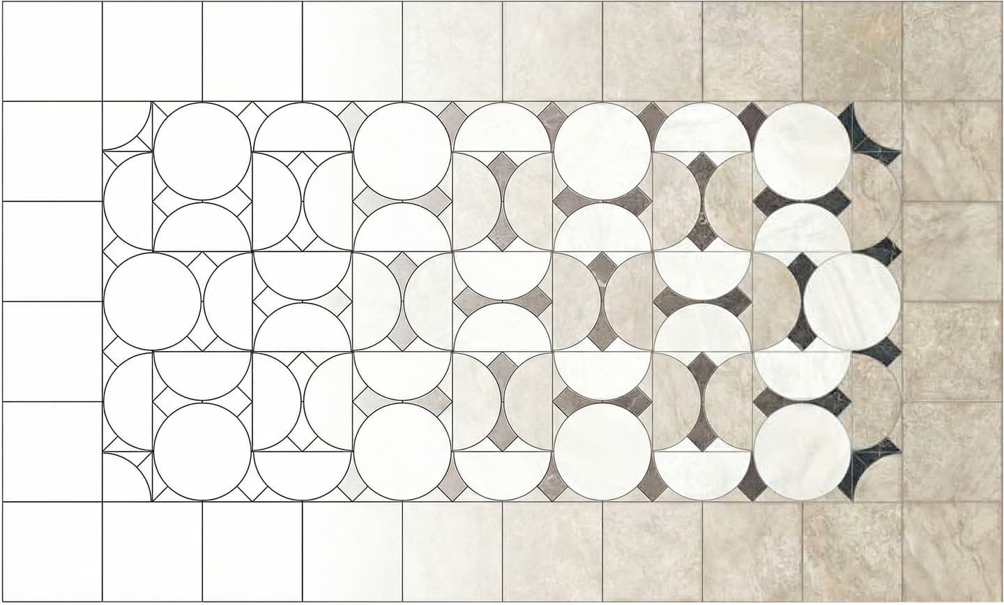 「ヴィヴェーレマルモ」は単なるタイルコレクションの枠を超え、空間を「装飾で語る」という壮大なビジョンを持つプロジェクトです。デッサンに基づき一点一点緻密にカット。幾何学モジュールを自在に組み合わせることで、建築の可能性を無限に拡張します。伝統的な幾何学模様から現代的なアレンジまで、国内外の高度な加工技術を駆使した特注カットにより、既製品では成し得ないオリジナリティ溢れるデザイン設計を実現。空間の隅々までを芸術的にトータルコーディネートすることが可能です。