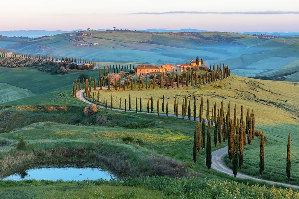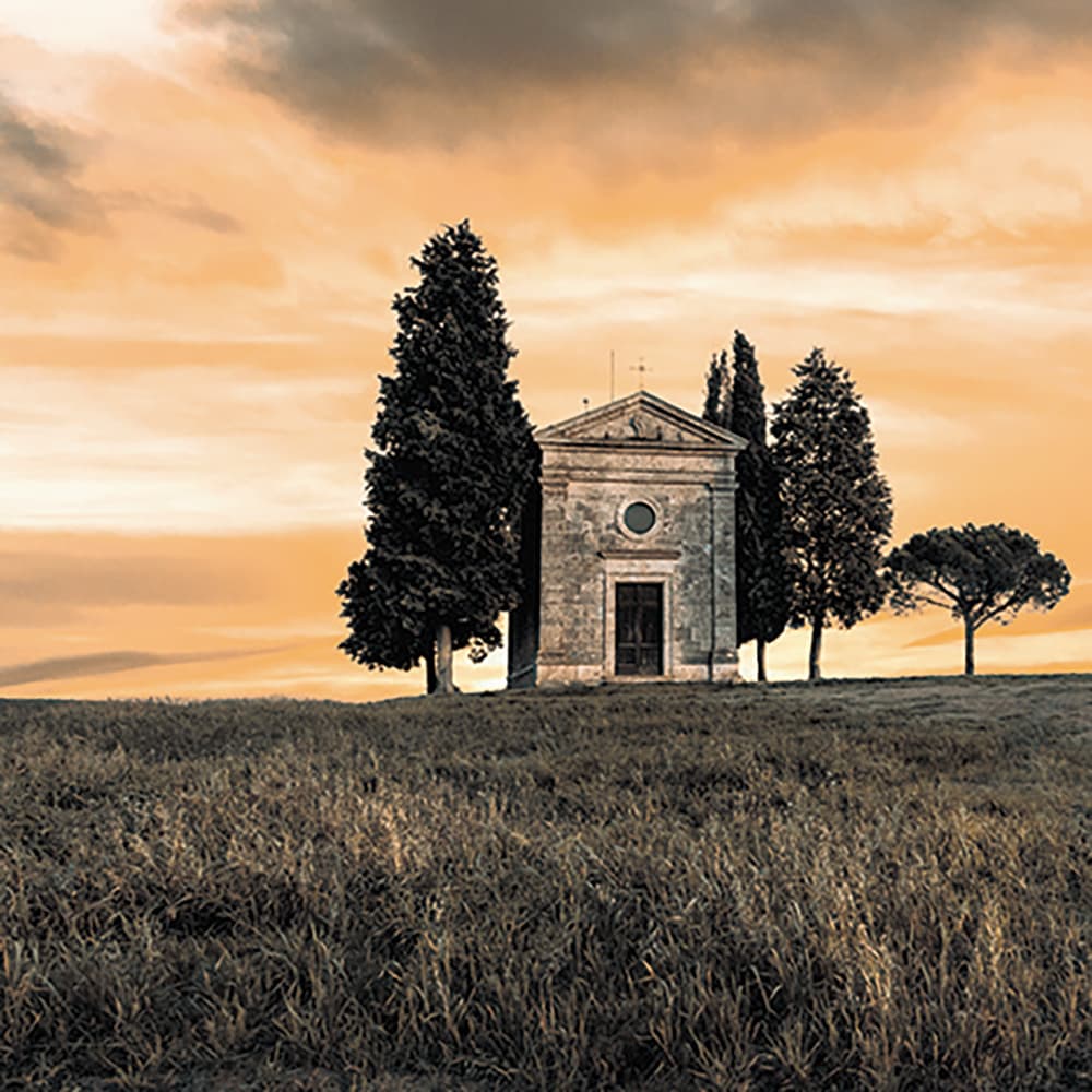 イタリア・トスカーナの田園地帯の夕暮れを思わせる色合い