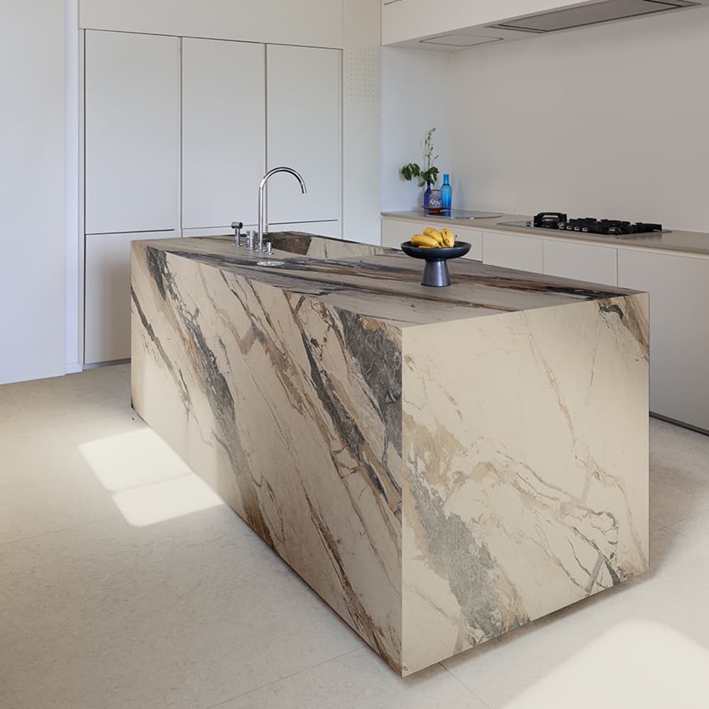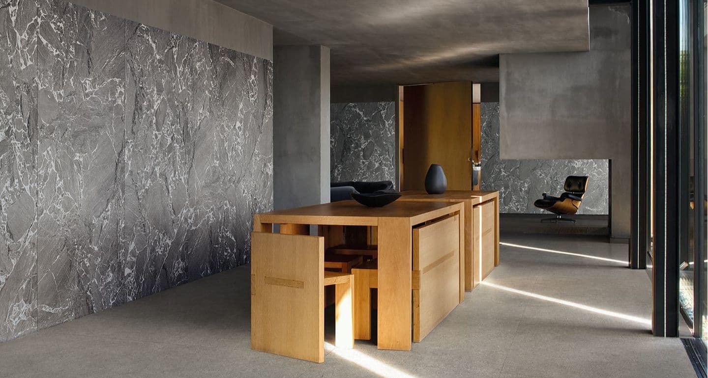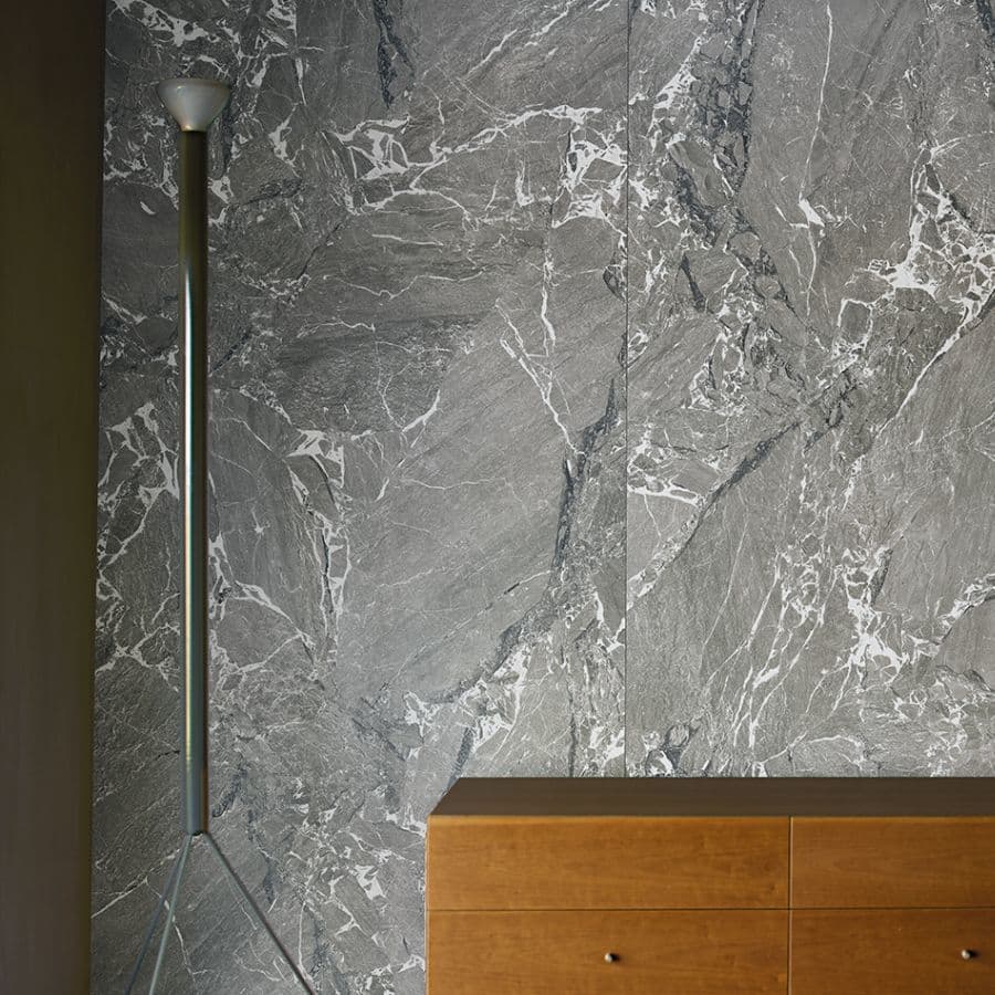 「ルミシチリア」は、シチリアという土地へのオマージュとして考案されたコレクションです。ルミ(Lumi)=光、シチリア(Sicilia)の名の通り、地中海の風景を輝かせてきた数多の文明の記憶を、タイルというかたちで表現しています。シチリア島は古代から多くの文明が交差してきた場所で、ギリシャ、アラブ、ノルマン、スペイン──それぞれの時代が残した痕跡は、建築や素材の中に層のように刻まれ、独特の景観を生み出してきました。「ルミシチリア」は、そうした土地の記憶と優美な大理石模様を重ね合わせることで、非常に印象的な模様とテクスチュアを実現しています。単なる石模様の再現にとどまらず、時間の積層や風化のニュアンスまでも感じさせる表情は、空間に深い奥行きをもたらします。「ルミシチリア」は、もはや背景としての仕上げ材にとどまりません。アクセントウォールや象徴的な空間のためにデザインされた個性豊かなサーフェイスは、タイルを単なる背景要素から、空間を構成するファニシングアイテムへと昇華させています。サイズは 8mm厚の1200角・1200×600角・600角に加え、6mm厚の2700×1200角を揃えています。また、6mm厚の2700×1200角は、革新的な水性釉薬技術を用いて製造され、環境への配慮と高いデザイン性を見事に両立させています。(40%以上のリサイクル素材を使用し、LEEDやBREEAMといった国際的な環境認証に準拠)