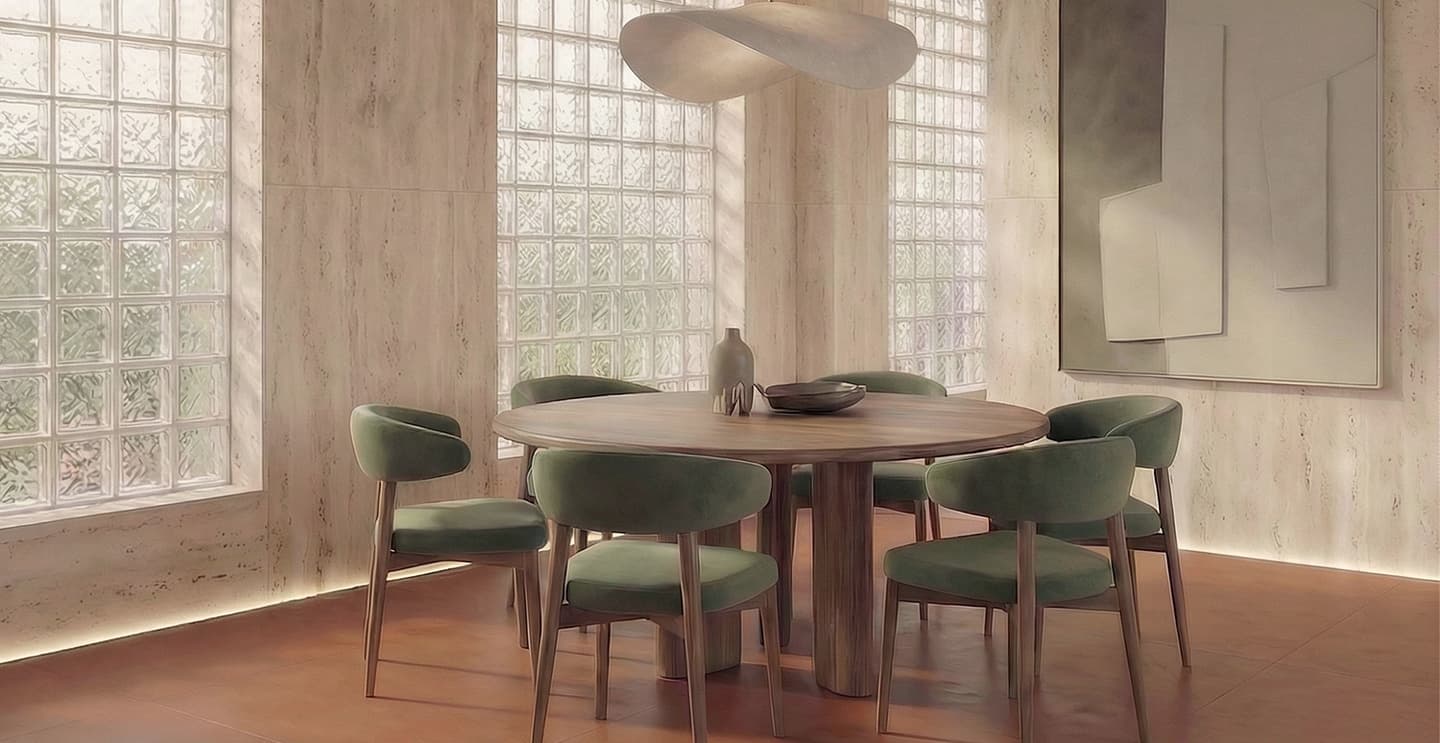 2026年に注目されるのは、テラコッタ、サハラベージュ、セージグリーン、ダスティブルーといった、自然を想起する色です。土、砂、樹木、石、粘土といった、地表に存在する素材から導かれたこれらの色は、空間に落ち着きと奥行きをもたらします。インテリア業界においても、サンド、クレイ、フォレスト、コーヒーブラウンといった色調が注目されています。興味深いのは、これらの色が単独で主張するのではなく、互いにやわらかく響き合うことで、豊かな表情を生み出している点です。たとえば、テラコッタの床に、セージグリーンの家具、サハラベージュの壁といったように、このような組み合わせには自然界に見られるような有機的な調和があり、空間全体に心地よい一体感をもたらします。この流れの中で重要なのは、色だけでなく質感もあわせて考えることです。リネンやウールといったやわらかなファブリック素材、天然木、ざらりとした石、焼き物の素朴な質感。こうしたテクスチュアとTuscan Dusk(タスカンダスク)の色彩の組み合わせが、視覚だけでなく触覚にも心地よさを与える空間を創ります。特に相性が良いのは、リビングルームやダイニング、ベッドルームといった日常の中で最も長く過ごす場所です。くつろぎや安心感、静かな高揚感が求められる空間において、これらの色は本来の魅力を発揮します。