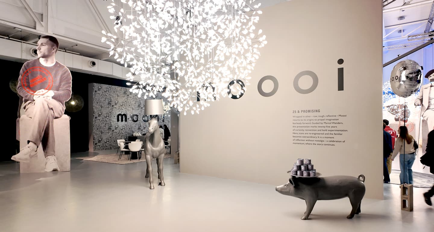 ミラノデザインウィーク2026、トルトーナ地区 Superstudio Piùで開催されたMoooiの没入型展示。ブランド創立25周年を迎えた今年のタイトルは「MOOOI 25 AND PROMISING」。単なる新作発表にとどまらず、Moooiの過去・現在・未来を、“銀色”という象徴的な表現でつなぐ記念碑的なプレゼンテーションだった。