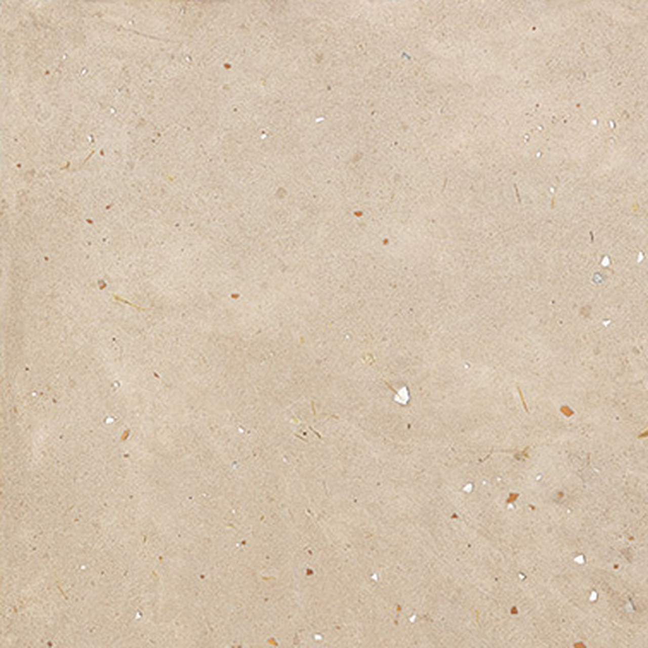 「サンディ(Sandy)」は直訳すれば「砂のような」を意味する形容詞です。しかしこのシリーズは、砂の色や質感をただ模倣しただけではなく、砂という素材そのものが持つ記憶をタイルに落とし込んでいます。砂浜は、世界中どこにあっても人々に似たような感覚を呼び起こすものです。足の裏に感じる細かな粒子の温もり、波に研がれた均質な滑らかさ、風に吹かれてできる微細な模様の重なり──その感覚は文化や言語を超えて、誰かの幼少期の思い出に、あるいは旅先での安息の記憶につながっています。「サンディ(Sandy)」の細やかな粒子感は、遠くから見ると均質に映り、近づくほどに表情の密度が増していきます。それは砂浜そのものが持つ印象と同じで、大地に根ざした力強さを空間にもたらし、「背景」としても安定感のあるシリーズです。カラー展開は、Ivory(白い砂浜)、Terracotta(赤茶の砂浜)、Volcano(黒い砂浜)という自然のグラデーションに、人工と自然の間のようなHay(干し草)とPowder、Concreteが加わることで、砂の持つ色域を超えて、現代の空間に馴染む豊かさを生み出しています。