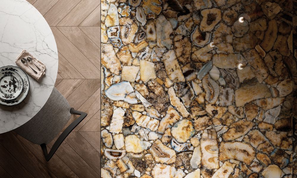 タイルのデザインが、従来の概念を超えて新たな表現領域へと踏み出しています。技術の進化と共に、大理石やその他の天然石、セメント、金属、木材などの様々な自然の素材や人工的に作られたテクスチュアをリアルに写してきたタイル。それが今や、宝石のように鮮やかな美しさとリアルな質感を再現するまでに進化を遂げています。