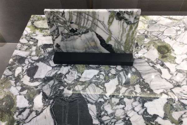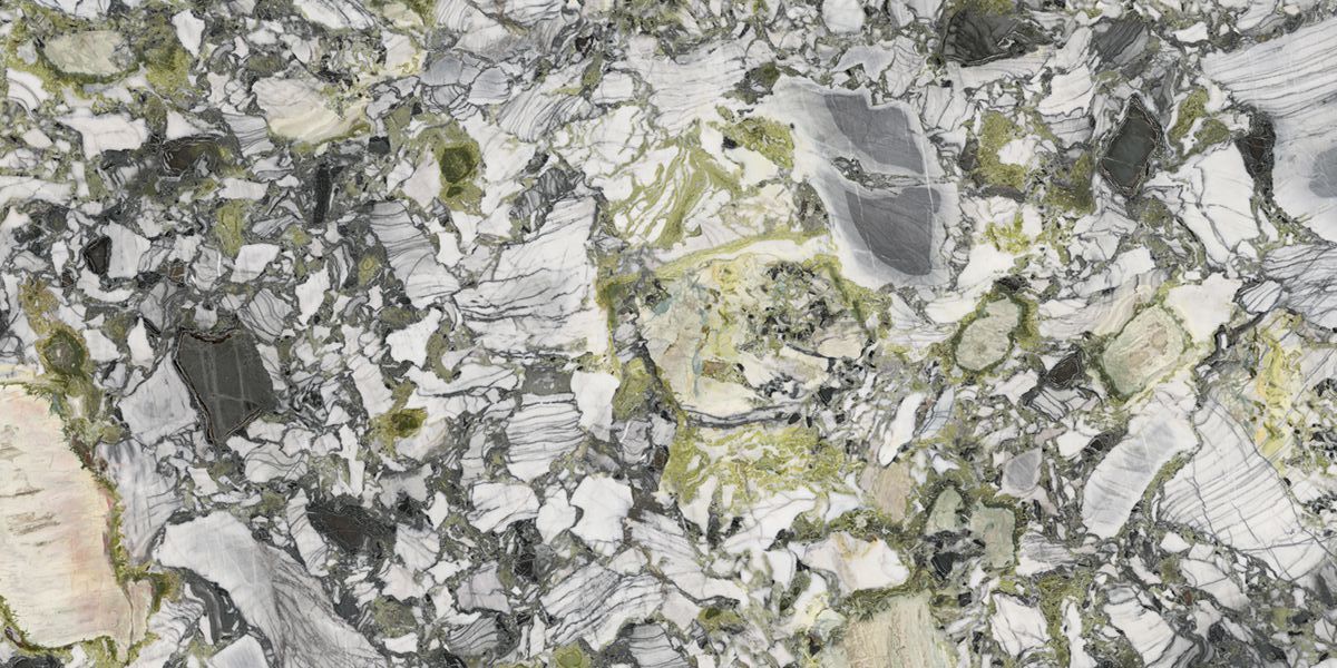 白、緑、灰色、黒の長石で構成された珍しいアジア産大理石からインスピレーションを得て、豊かで独創的なデザインを創り出しています。希少でエキゾチックな質感と洗練された仕上げ、その細部に宿る深く美しい輝きは、驚くような効果をもたらします。