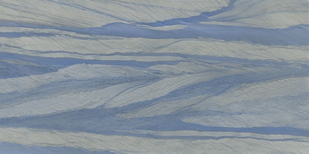 白からブルーにかけての繊細な配色と、流れるような葉脈模様が特徴です。ゴールドやベージュが散りばめられたスプラッシュ斑が加わって、深みのある優雅さを備えています。洗練された美的空間をカスタマイズするには、理想的な素材です。