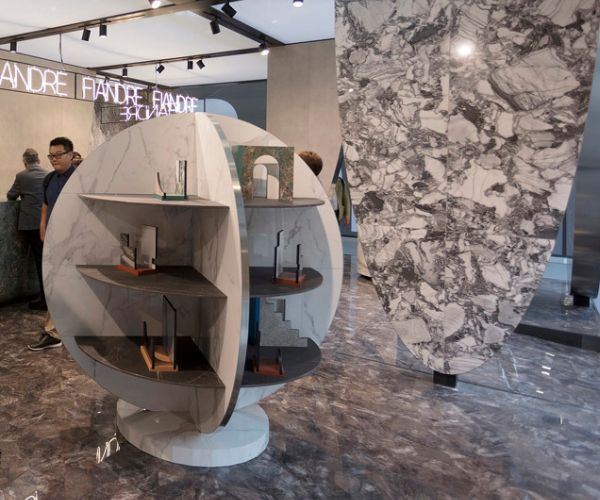 2019年9月下旬にイタリア・ボローニャで開催されたタイルと水回り設備の展示会チェルサイエの展示ブースのデザインです。
