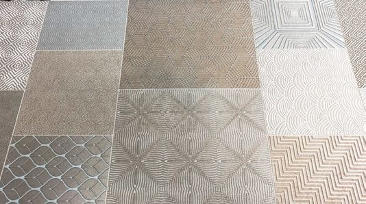デジタル・ドライ・デコレーションの出現により、表面の緻密な表現だけでなく、素地ベースも奥行きのある立体的な表現が出来るようになり、より複雑で、自然をそのまま写したような表現が可能になりました。ウエットとドライという二つの装飾技術を使い分け、あるいは合わせて使うことで表現の幅が飛躍的に広がっています。(デジタル・ドライ・デコレーションは、比較的大型のタイルに使われています。)