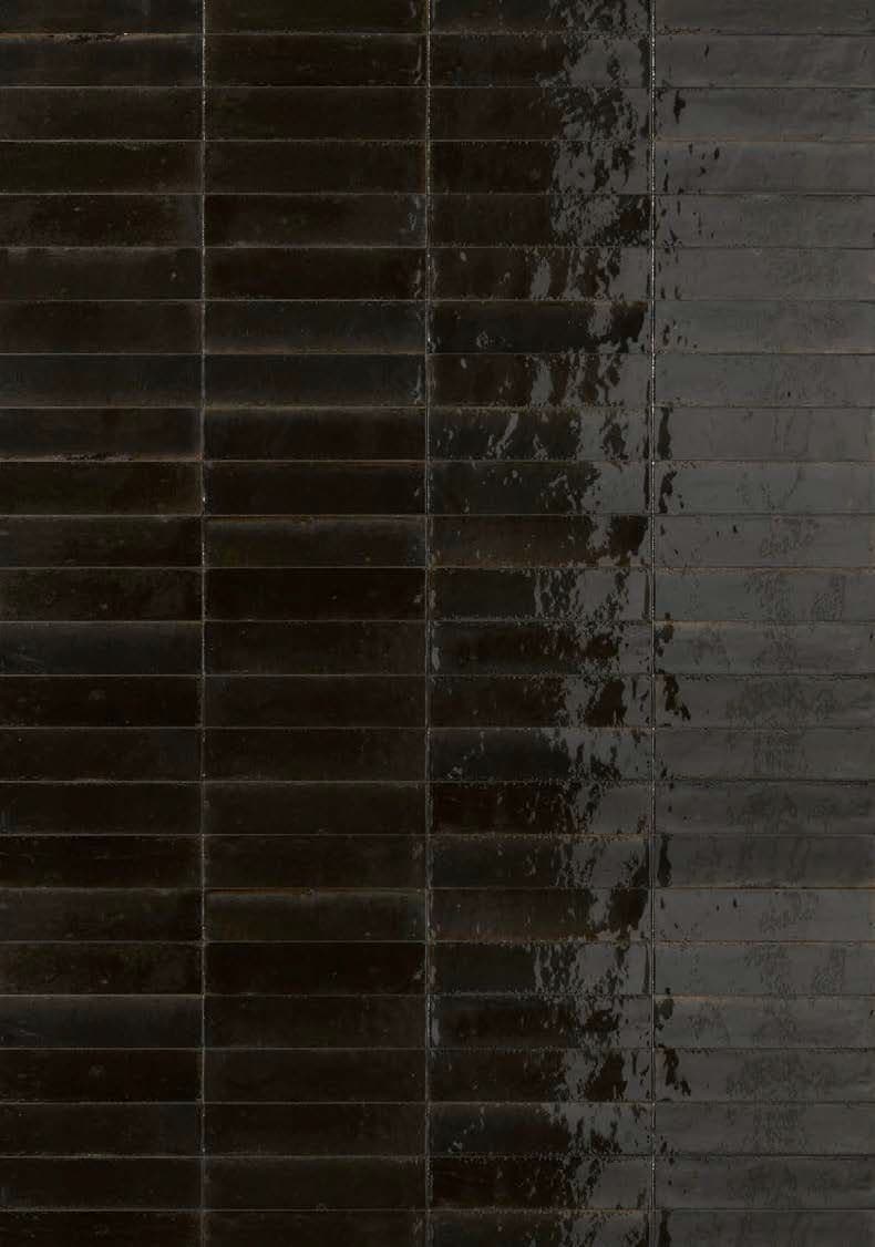 過去に制作したタイルのアイディアや印象を取り入れ、手作業で作られたタイルの風合いをデジタル技術で再現した「クロジョーロ」は、熟練した職人技の伝統と工業技術を融合させて、人間の「感覚」と「技巧」への回帰を提案するものです。丁寧にグラデーションされたカラーは、40種類から70種類の色幅が表現されており、さらに、光の反射で常に変化するエナメル釉を表現するために透明の釉薬を厚く掛けているので、強い色合いと緻密な釉薬の光沢が印象的です。デジタルが作り出した窯変技術により、華やかさを持ちつつ、オーセンティックで落ち着いたその仕上がりが、マジョリカタイルの歴史を思い起こさせます。