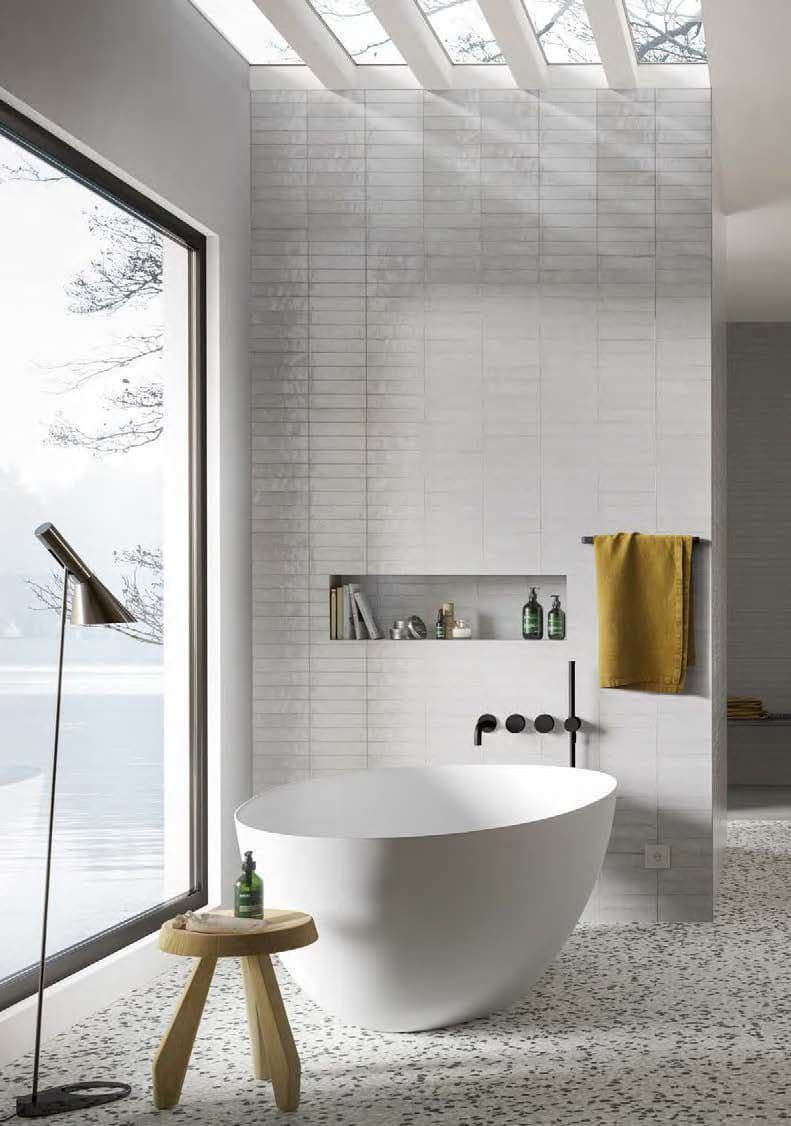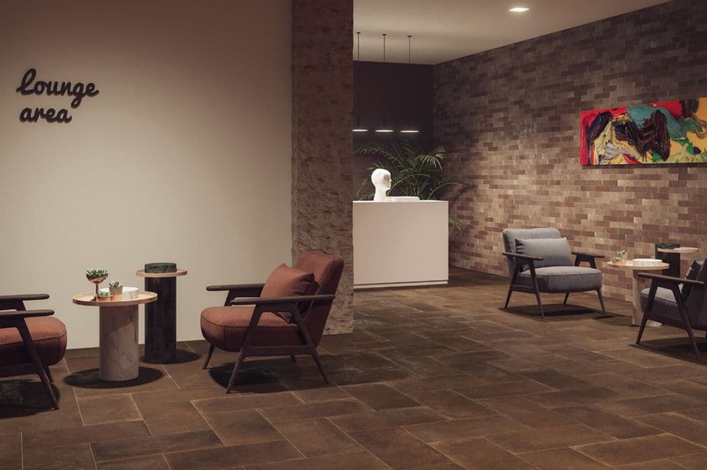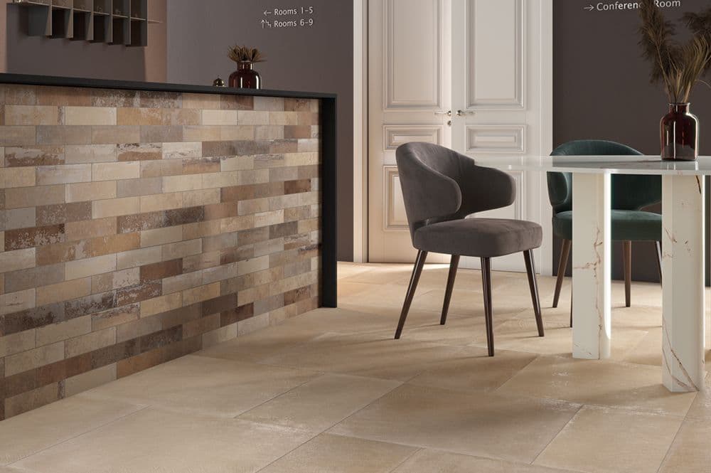 2021年、新製品として、トスカーナの丘(キャンティの丘)にある歴史的な街並みの美しさを再現したレンガ調タイルが登場します。中世の内外装に使われた多様なレンガの風景をグラフィカルに再現し、磁器質の持つ確かな機能と、経年が生み出す柔らかな風合いという相反する特長をうまく融合させました。このタイルもデジタル技術によってヴィンテージ感を演出するものです。