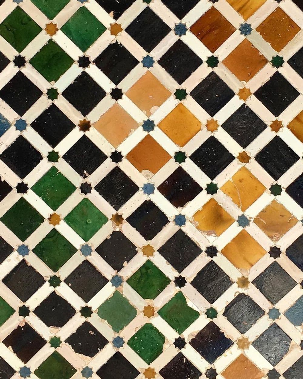 「エスマルタード」はゼリージュタイルをデジタル技術で再現したタイルです。イスラム圏の北アフリカを起源とするゼリージュタイルは、スペインでグラナダのアルハンブラ宮殿等を飾る陶器質のタイルとして発展しました。現代でもモロッコなどで生産され、欧米ではエキゾチックなハンドメイドのタイルとして人気があります。