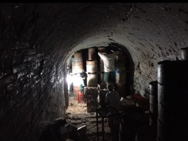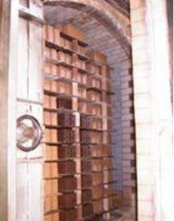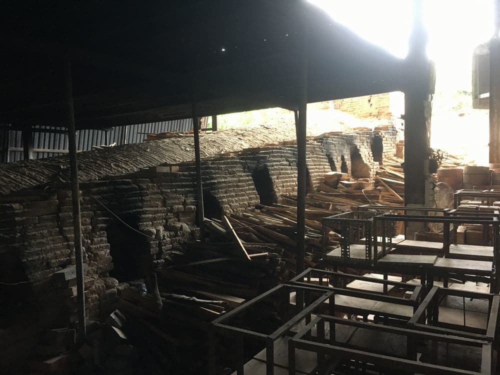 ゼリージュタイルを焼く登り窯とタイルの窯入れ風景。