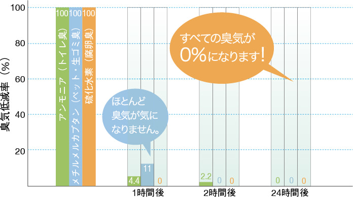 ※クリオン(株)開発研究所にて実施した試験データです。部屋の諸環境・気温・気象や換気などの条件によって異なります。