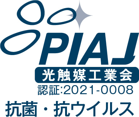 PIAJマークは光触媒工業会が性能・利用法などが適切であることをJIS評価法を用い、基準値をクリアした光触媒製品に与える認証マークです。