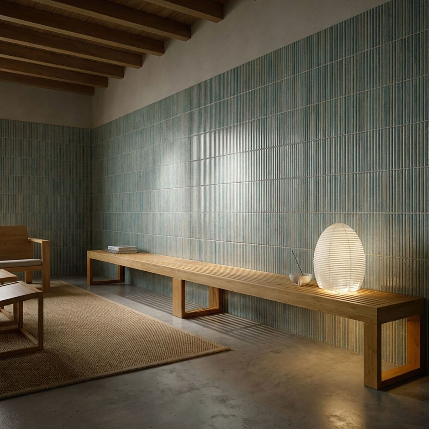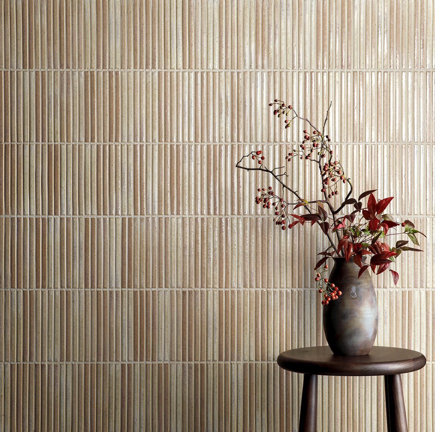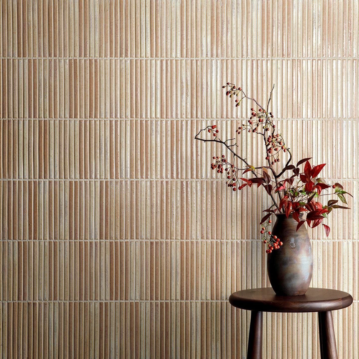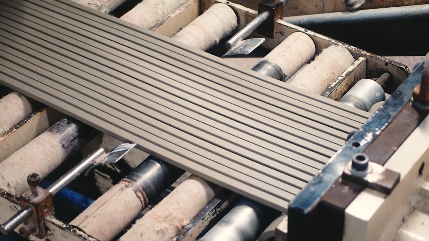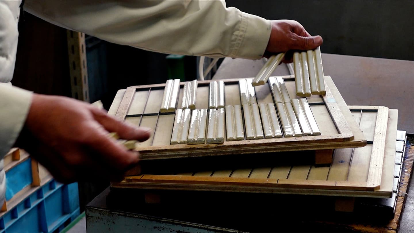 釉薬をスプレーでタイル素地に施す