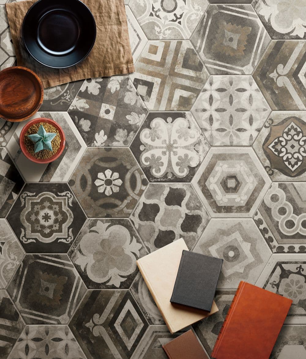 274×237六角形平(柄 数十種ランダムミックス) 14,800円/㎡