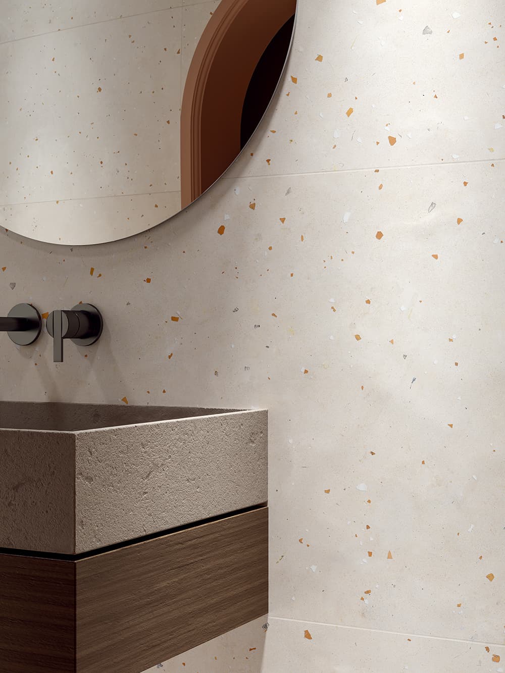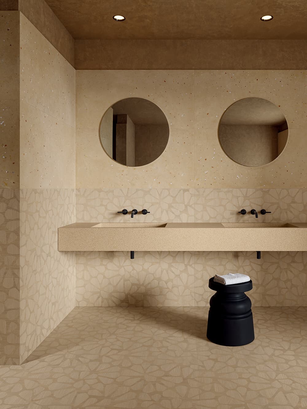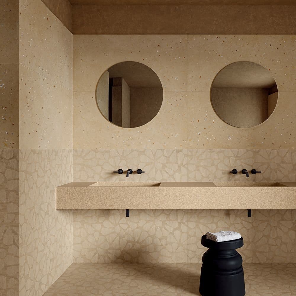 先進的な技術を誇るタイルメーカー「ABK」グループと、家具・照明・テキスタイルを手掛けるオランダの革新的なインテリアブランド「moooi」のコラボレーションによるセラミックタイルのコレクションです。ABKの先進技術とmoooiの中核となる価値観である「Unexpected(予期せぬ、意外な)」に基づくデザイン哲学が融合して生まれました。このタイルは、単なる建材ではなく、建築空間の “面” を物語のあるキャンバスへと変える、アートピースのような存在を想定して開発され、日常の中にアートと静寂が共存する特別な「空気感」をもたらします。