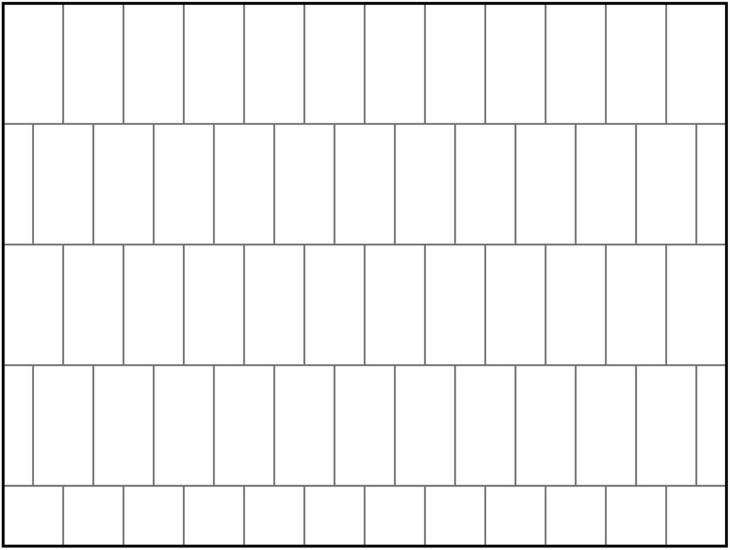 ●1200×600角の商品を馬踏み目地で施工する場合、ずらし幅は長辺の1/4以下にしてください。