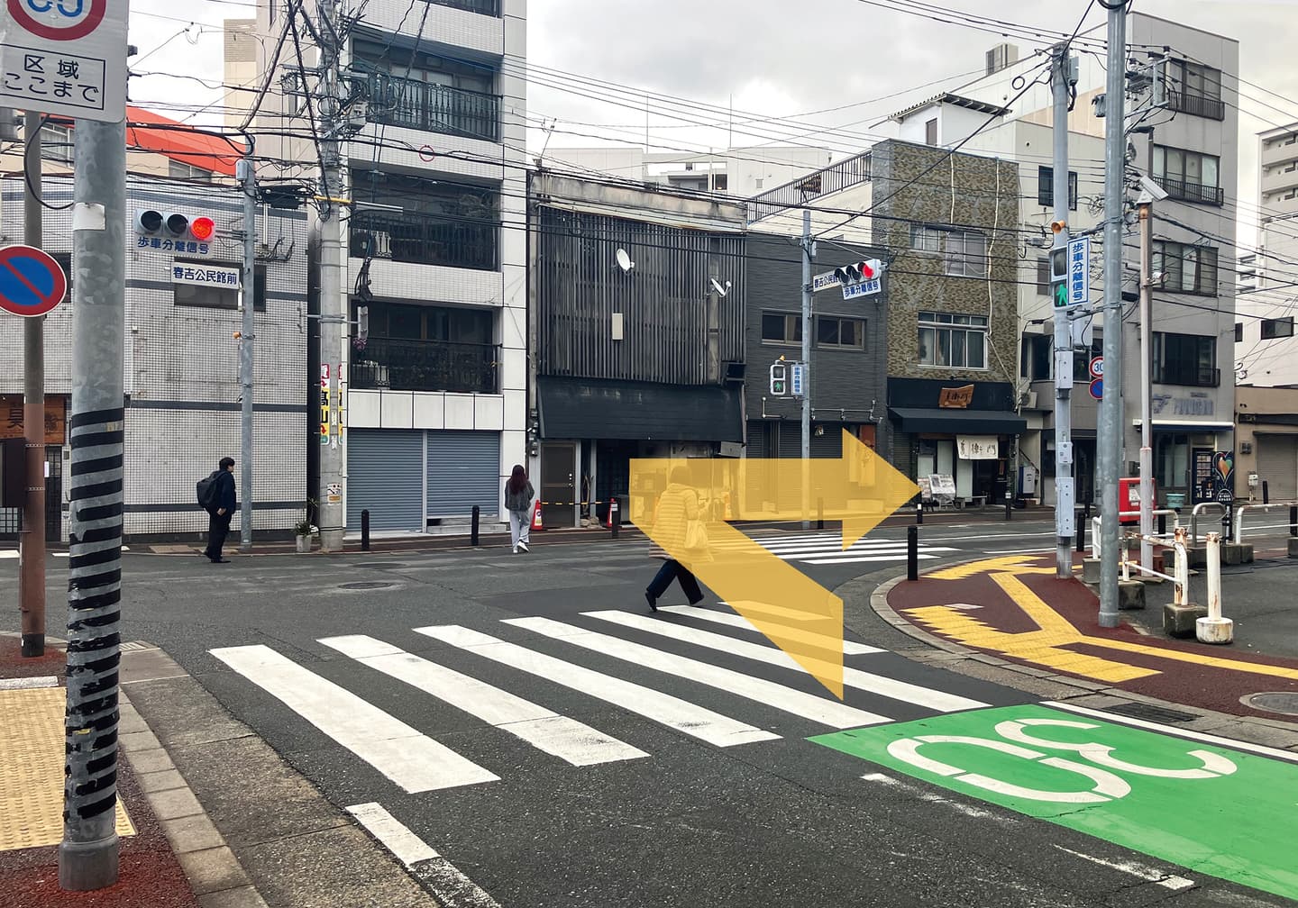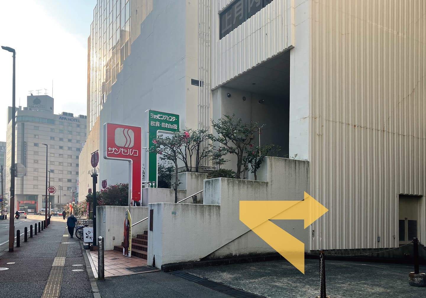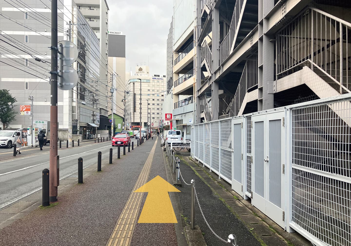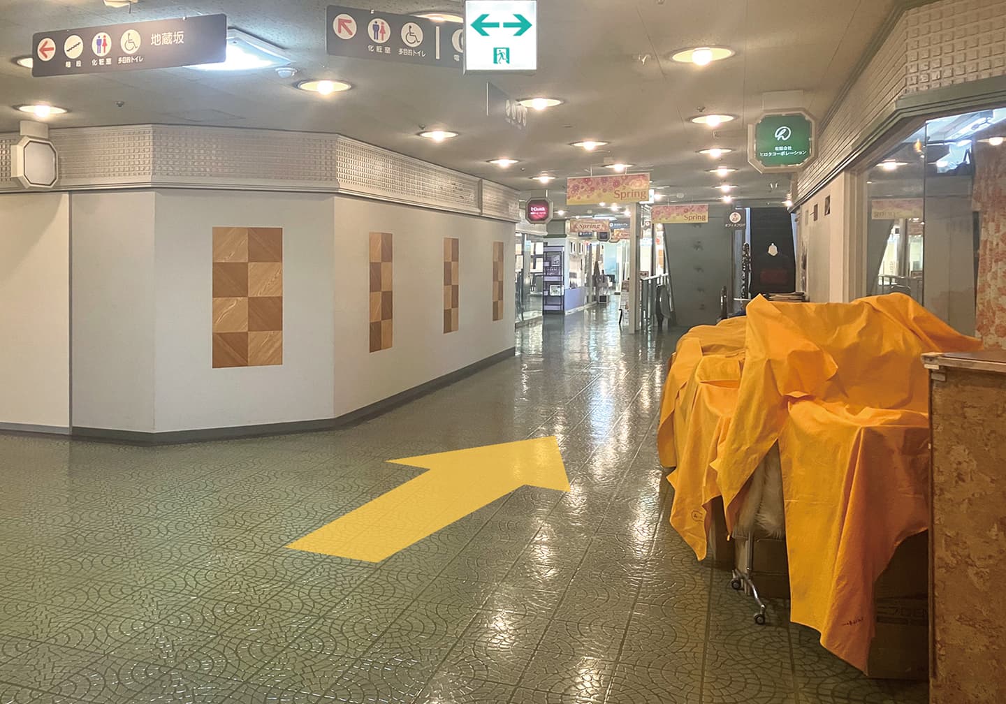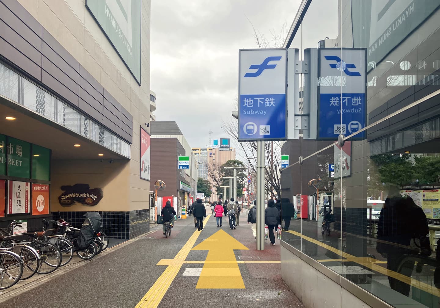 01 地下鉄「渡辺通駅」2番出口を出てサンセルコ方面に進みます。(エレベーターは1番出口)