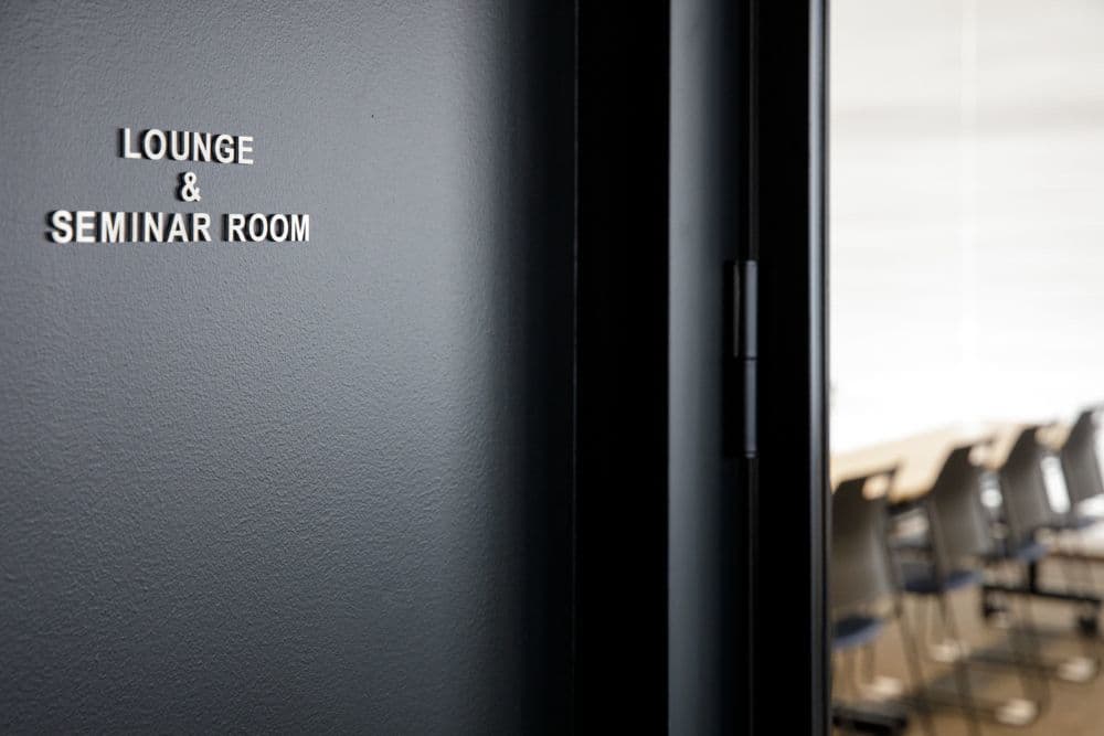 イベントやセミナー開催のために設置したLOUNGEスペース。様々な情報を多くの人と共有することで、コミュニケーションの活性化を図る場所です。
