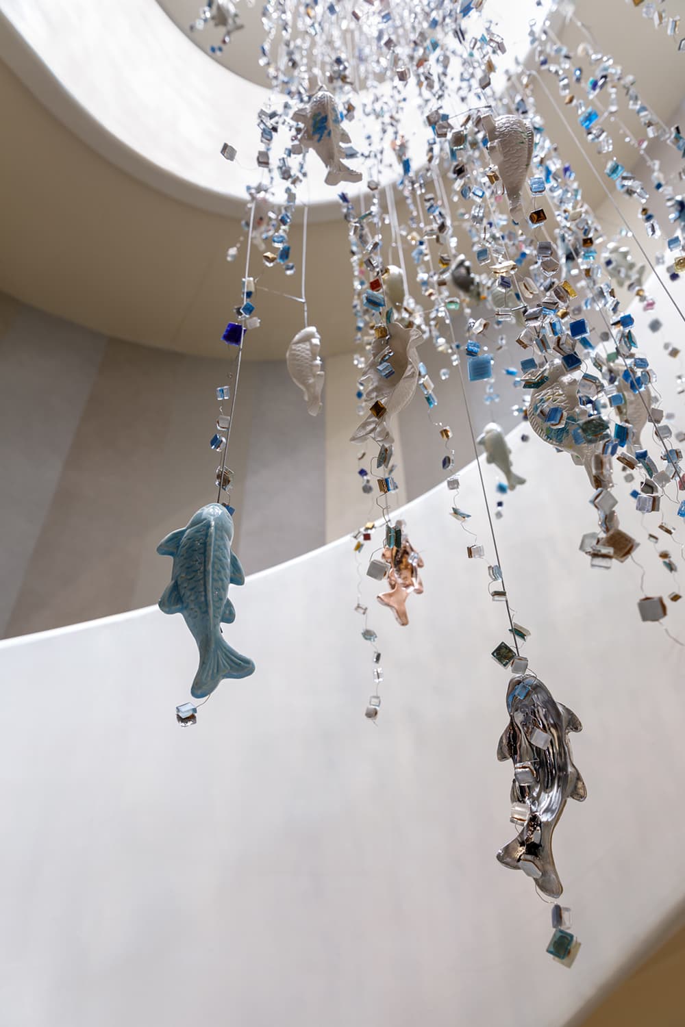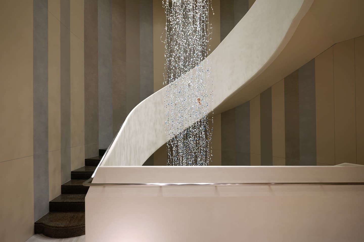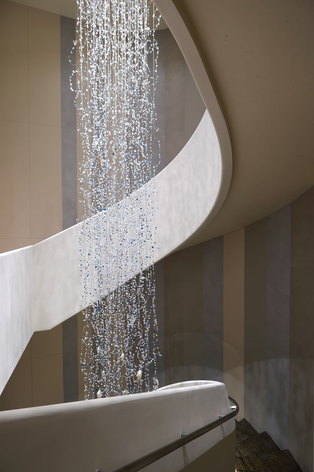 B1Fから2Fまで約10mを貫く環境アートは縁起物の「鯉の滝登り」