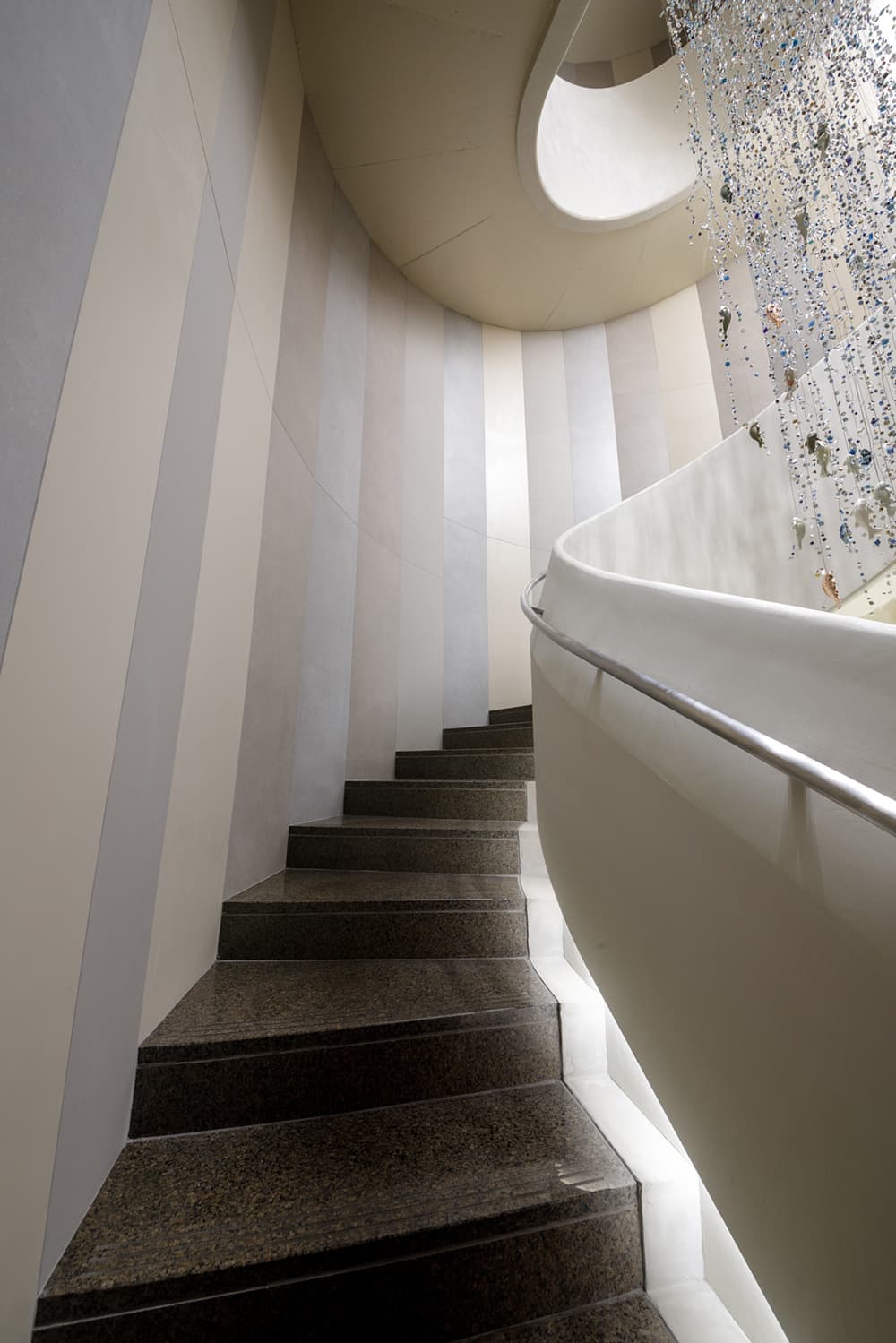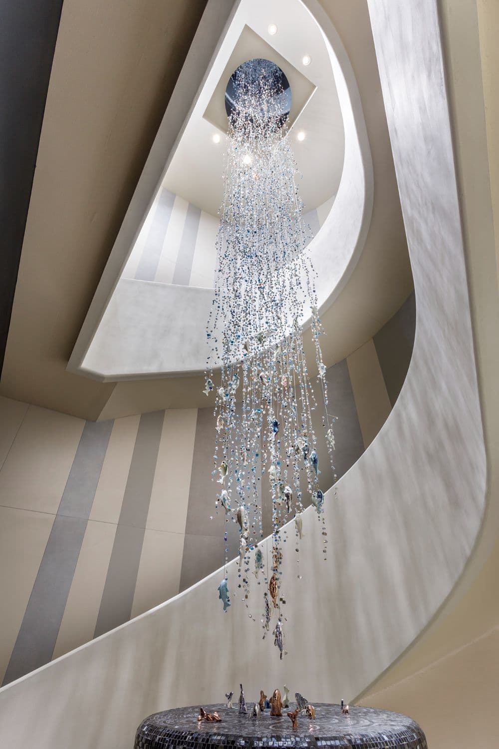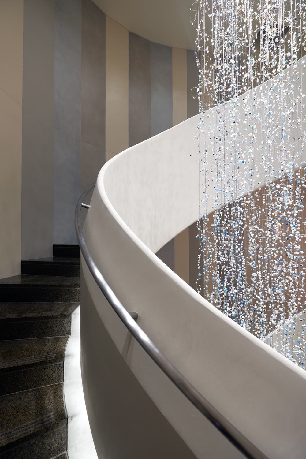 B1Fから2Fまで約10mを貫く環境アートは縁起物の「鯉の滝登り」